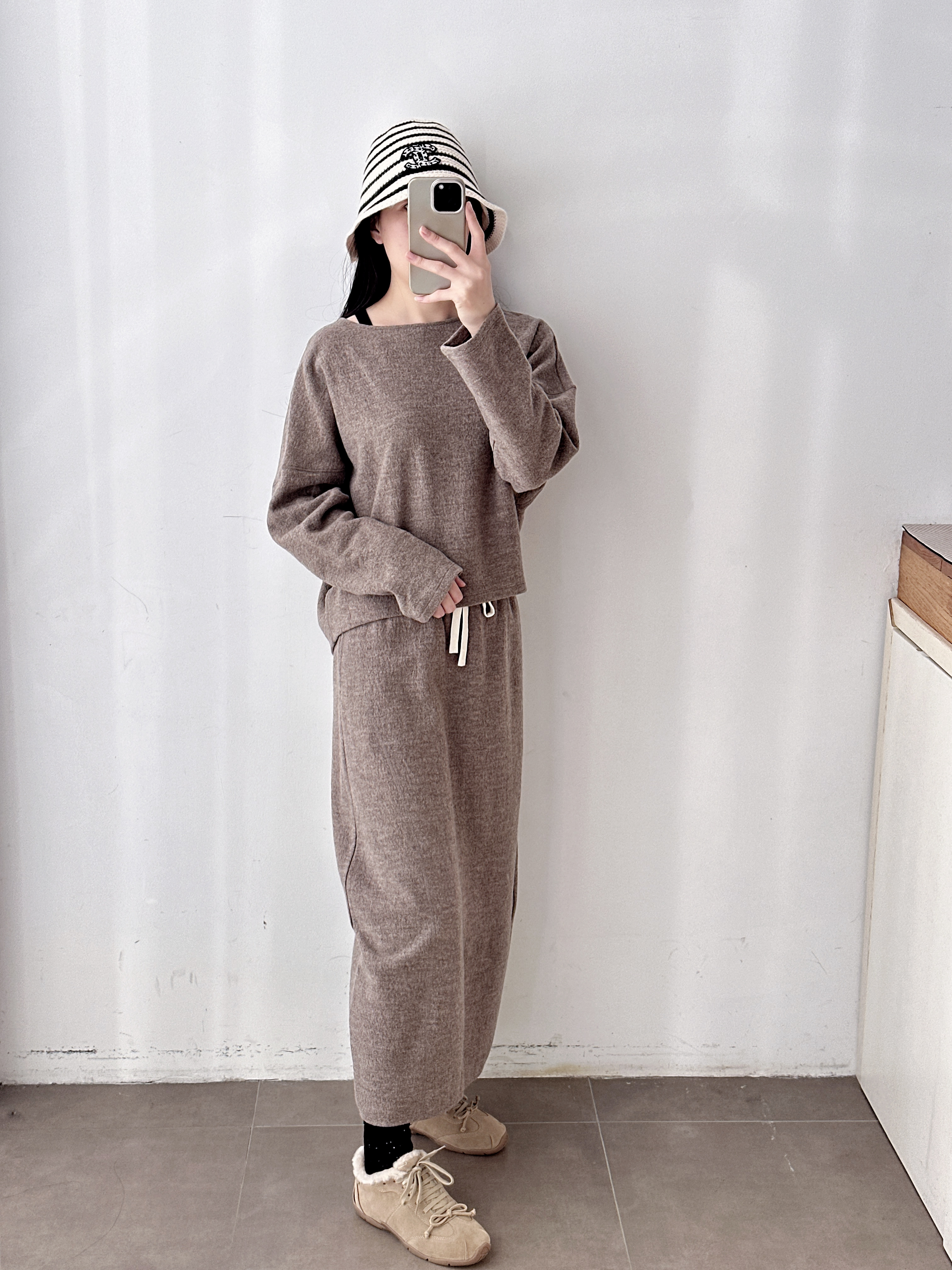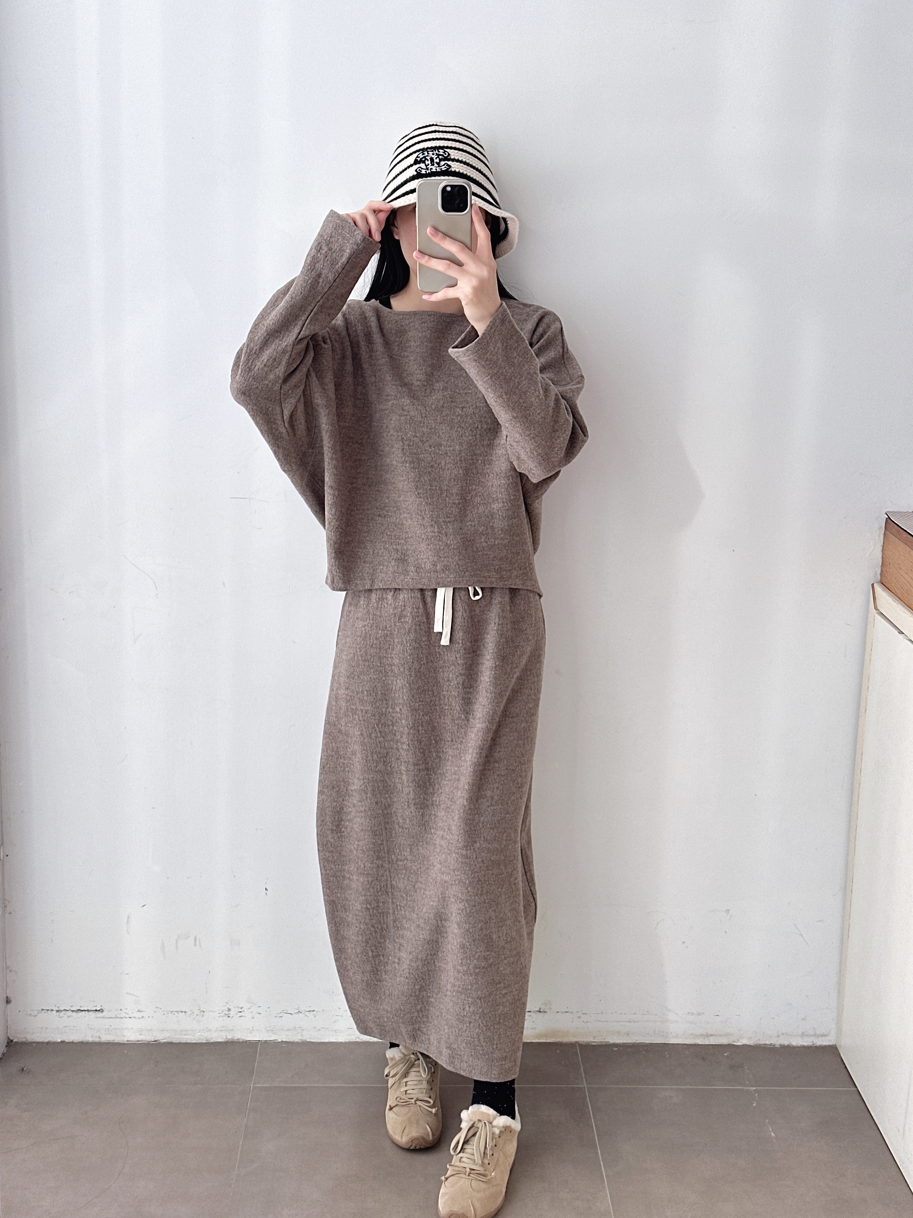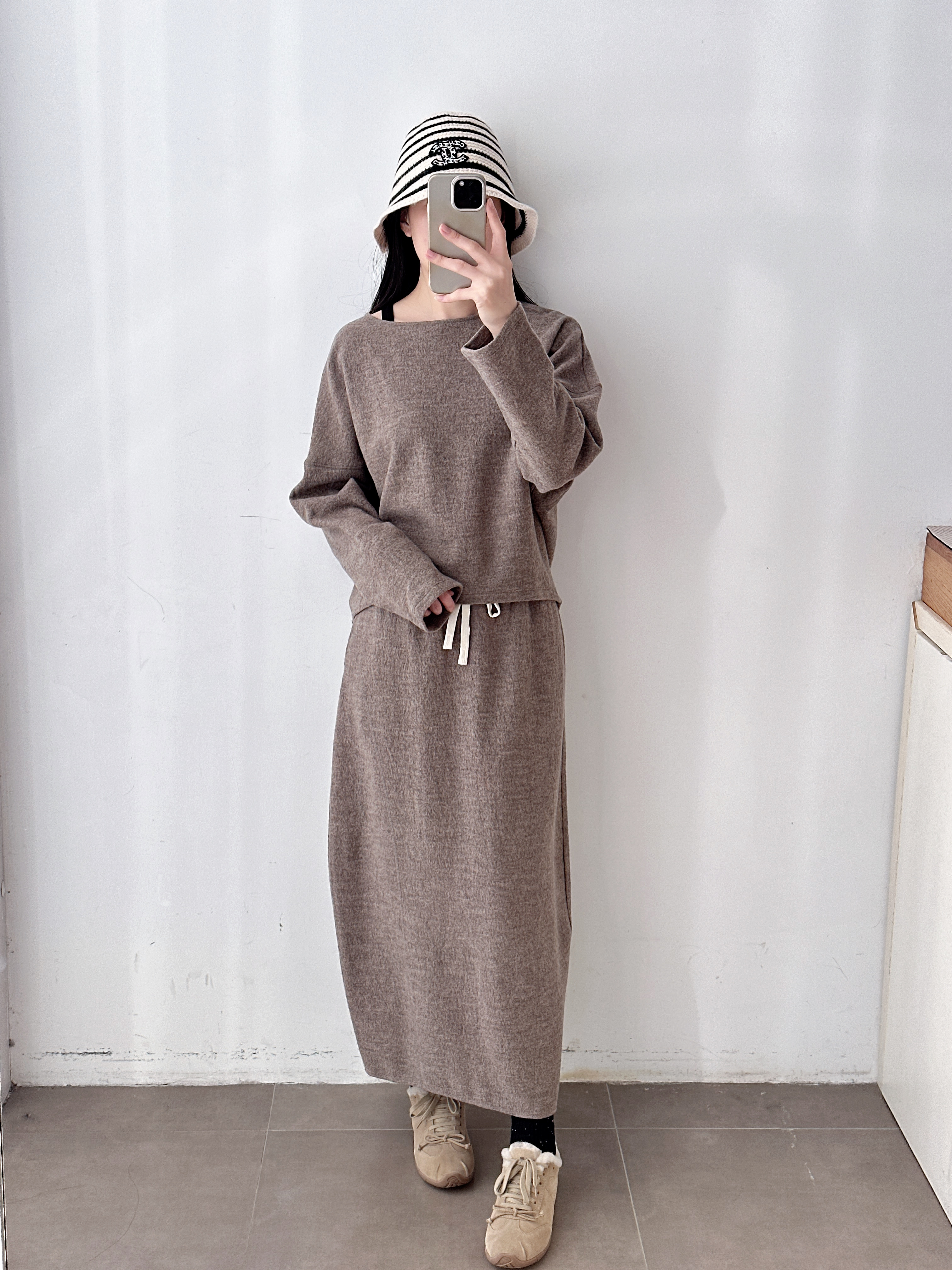 新品秋冬抽绳羊毛直筒中长款半裙套装