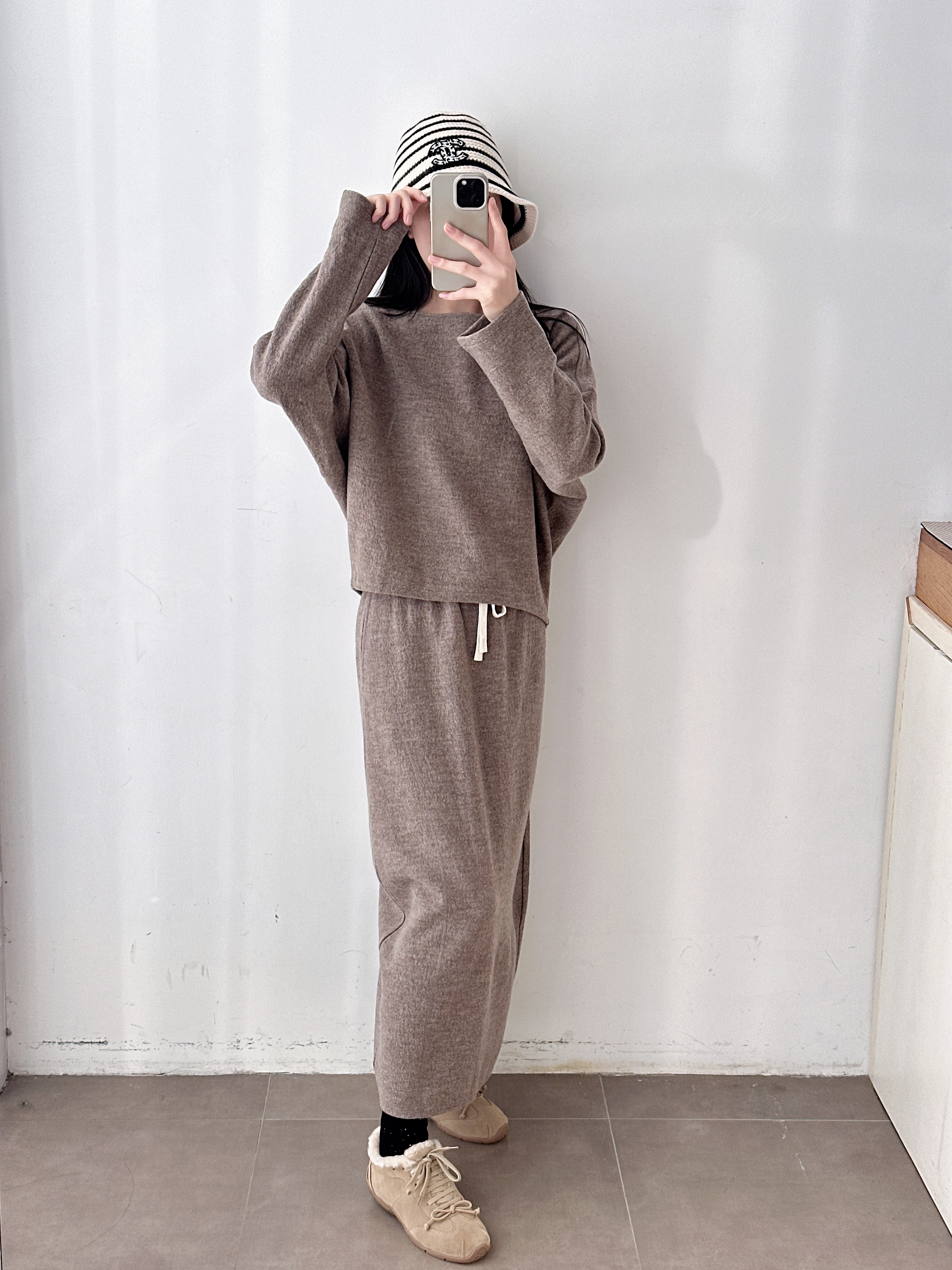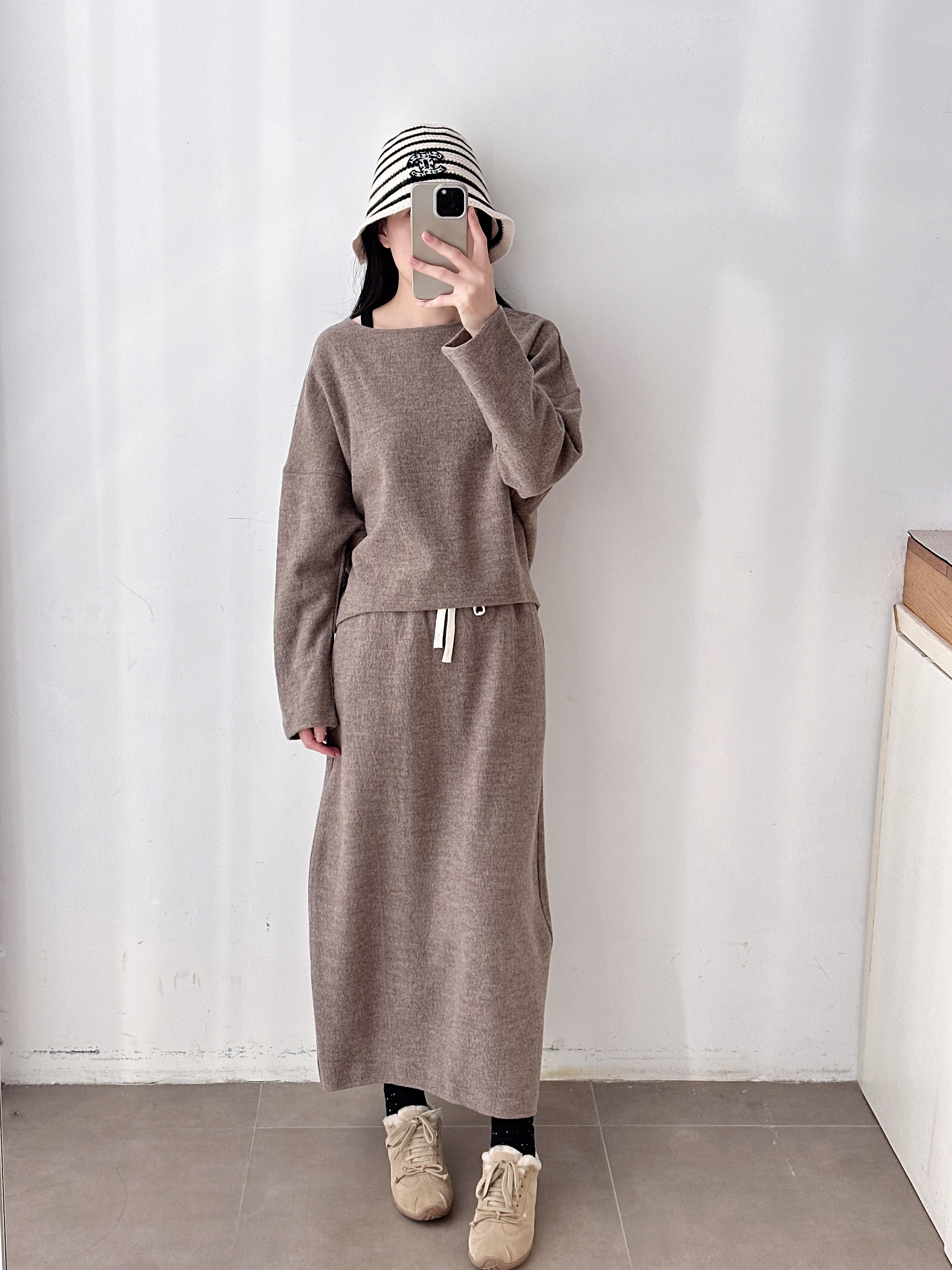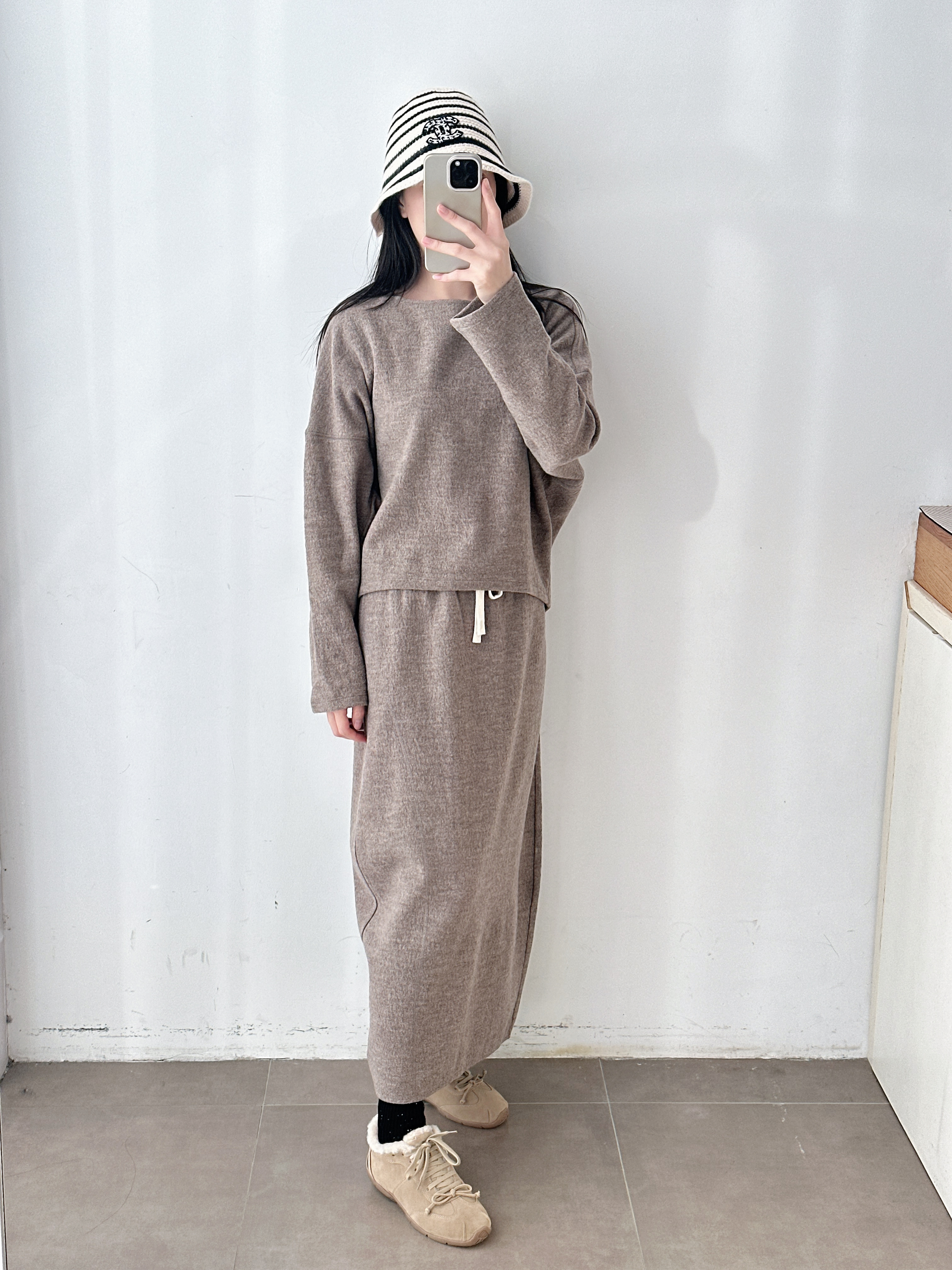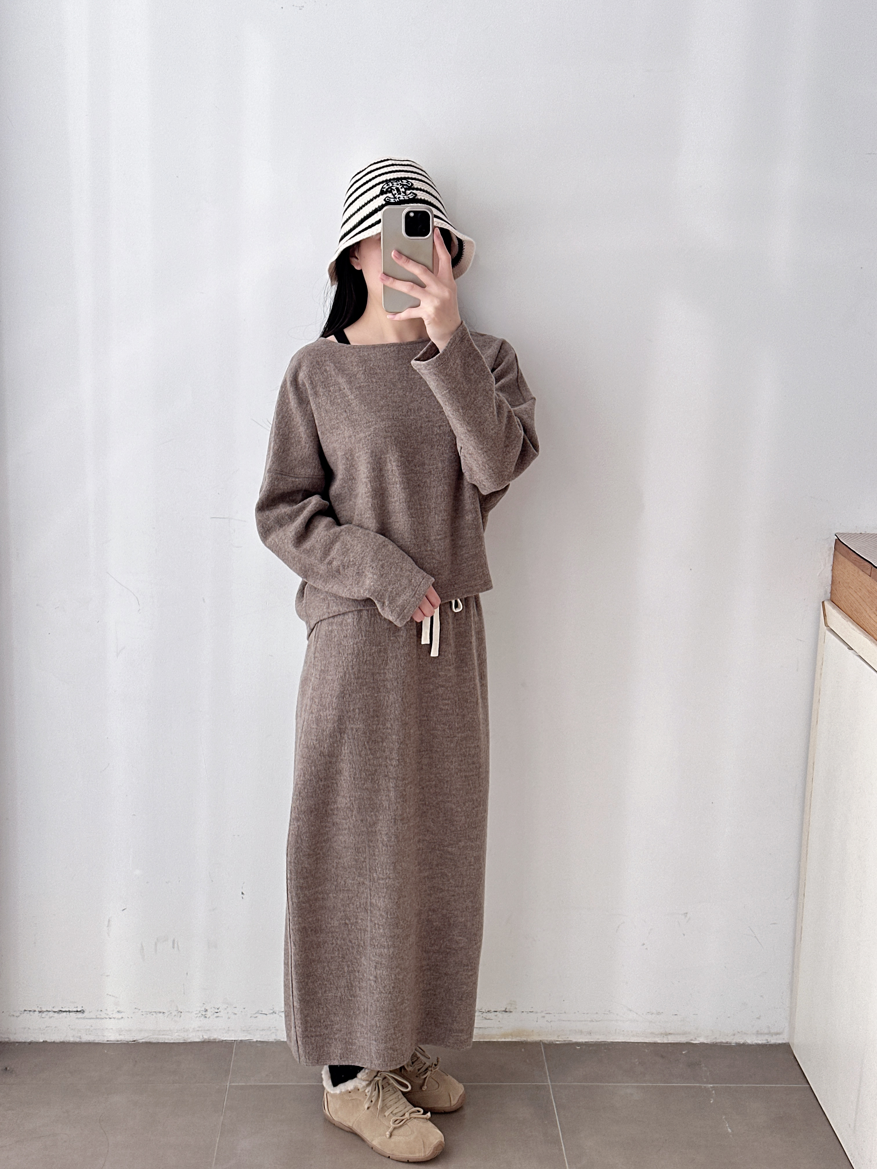 新品秋冬抽绳羊毛直筒中长款半裙套装