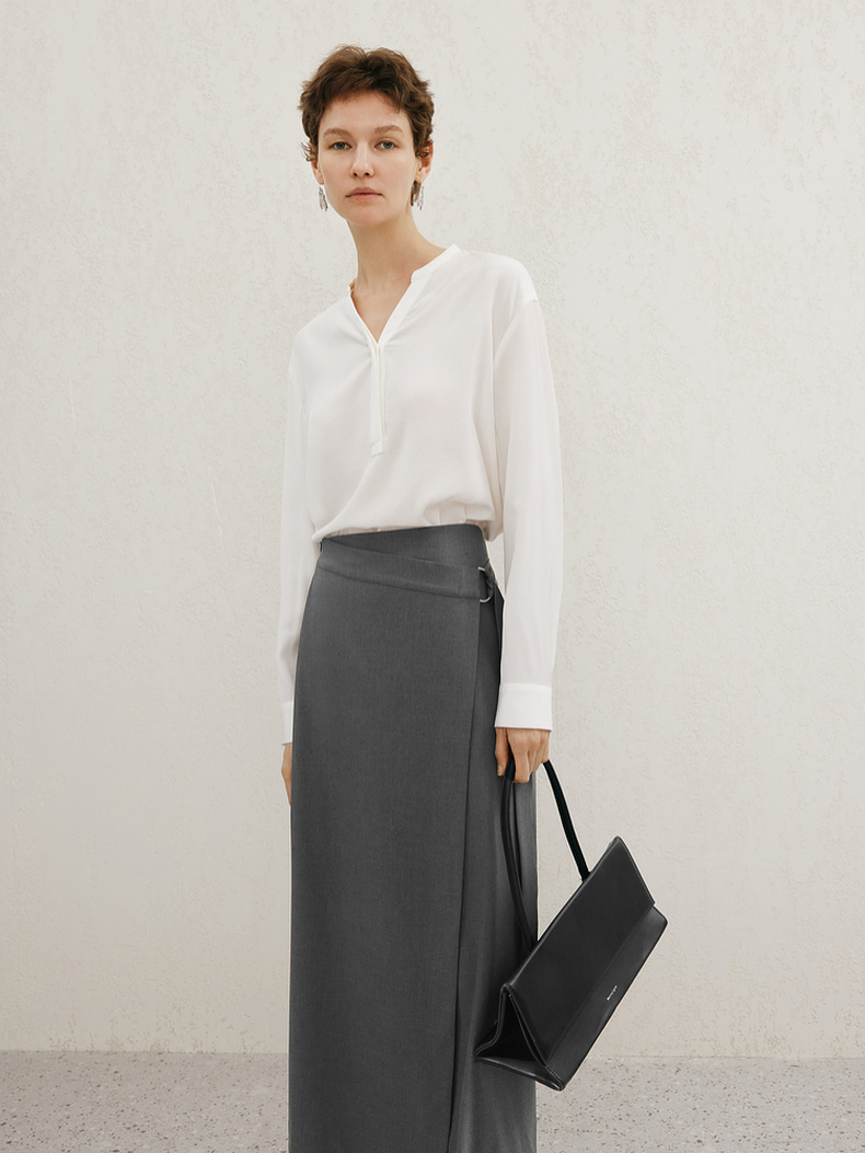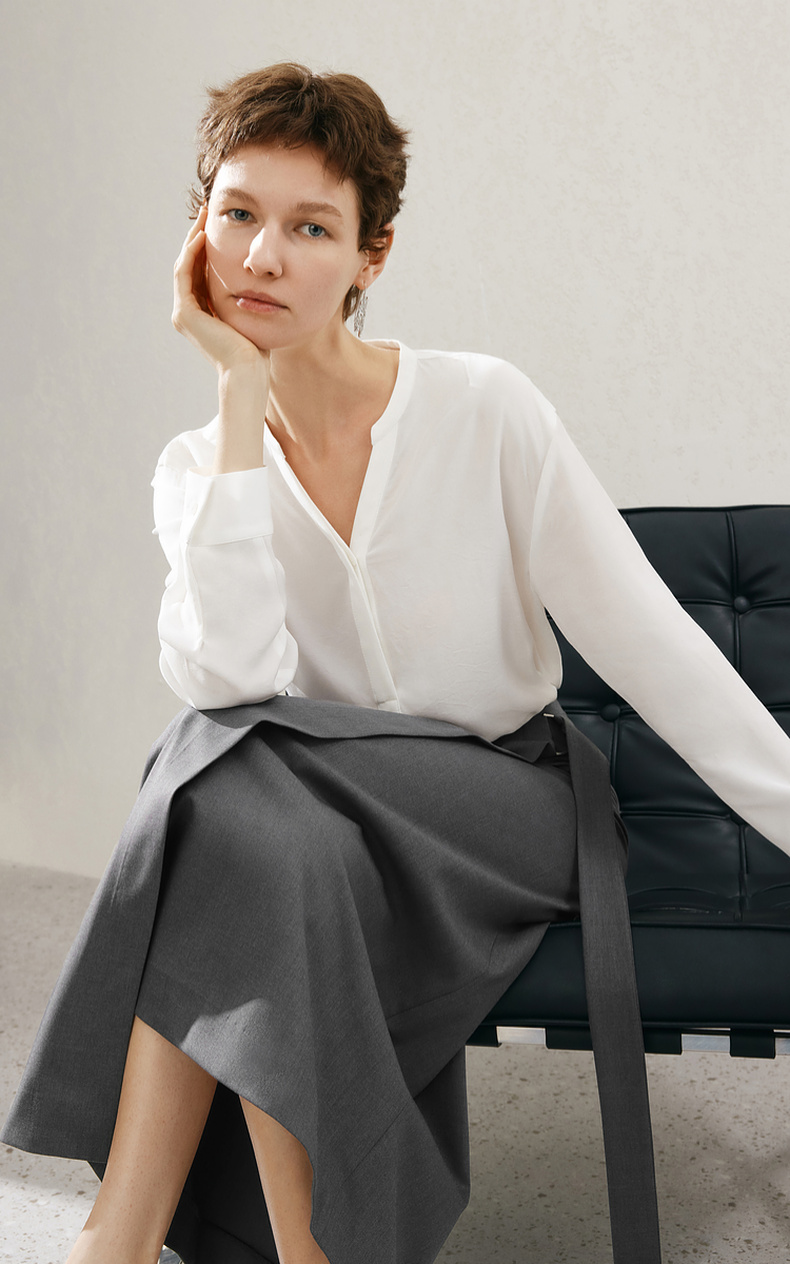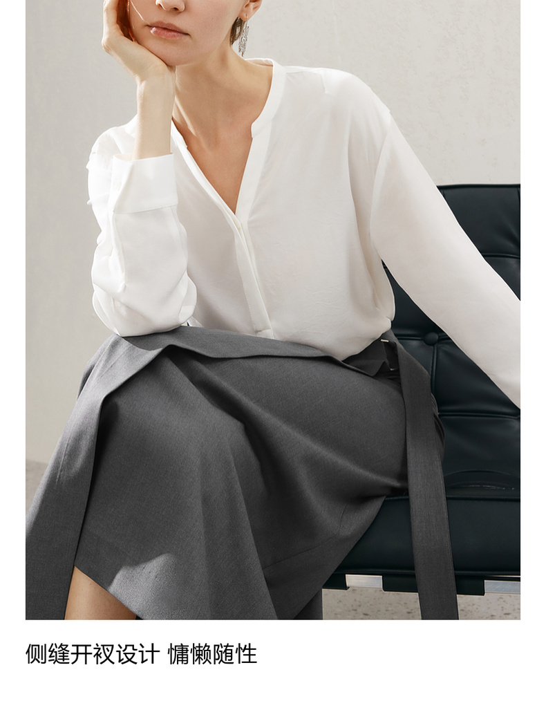 【商场同款】麦檬春秋醋酸冰丝凉感V领小上衣5F2220381