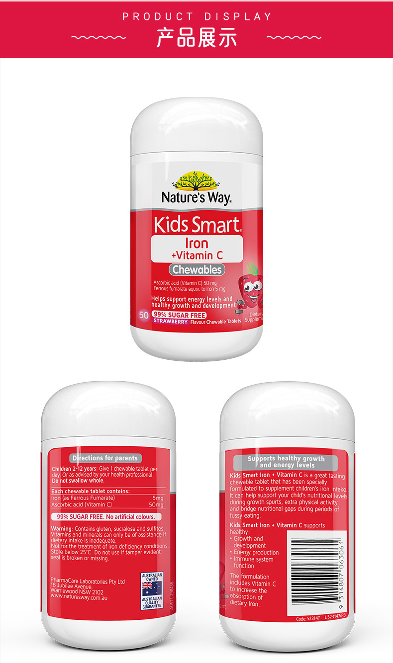 【跨境进口】Nature’s Way佳思敏儿童铁咀嚼片 50粒 *2 2岁+(效期26年3月)|报关后不支持退换货 介意慎拍