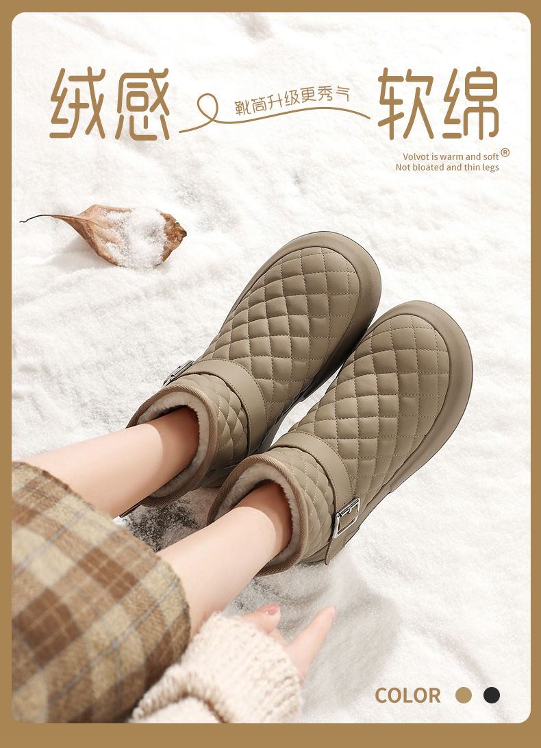 ZHR则则加绒防水雪地靴防滑女鞋2024冬季新款加厚保暖百搭棉鞋女