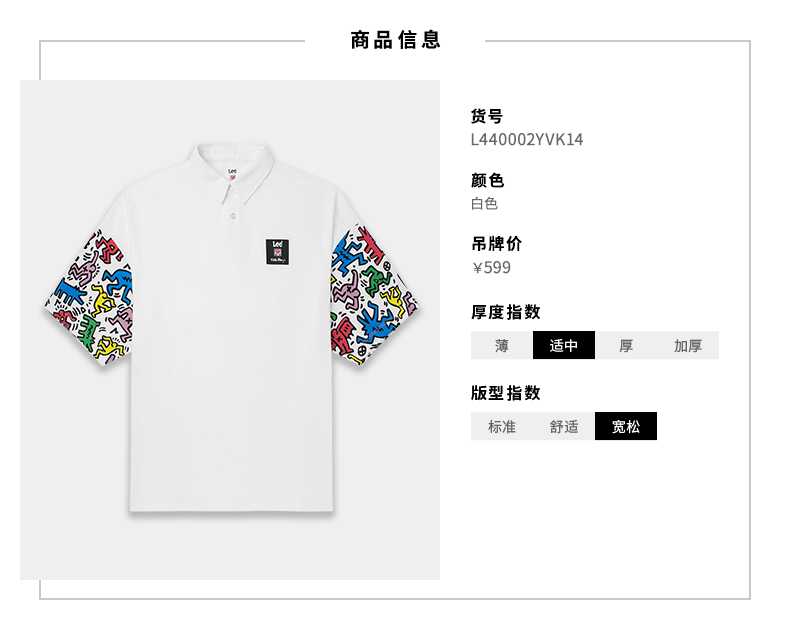 【Keith Haring联名】Lee21新品宽松白色女短袖T恤L440002YVK14