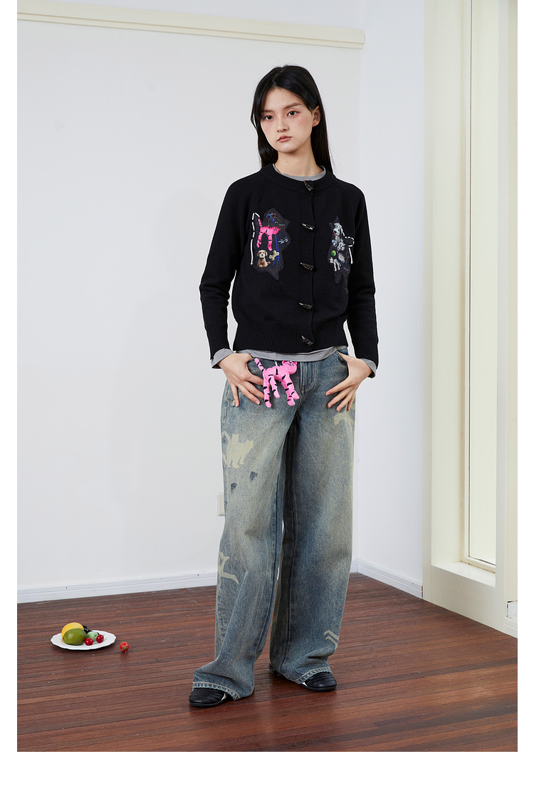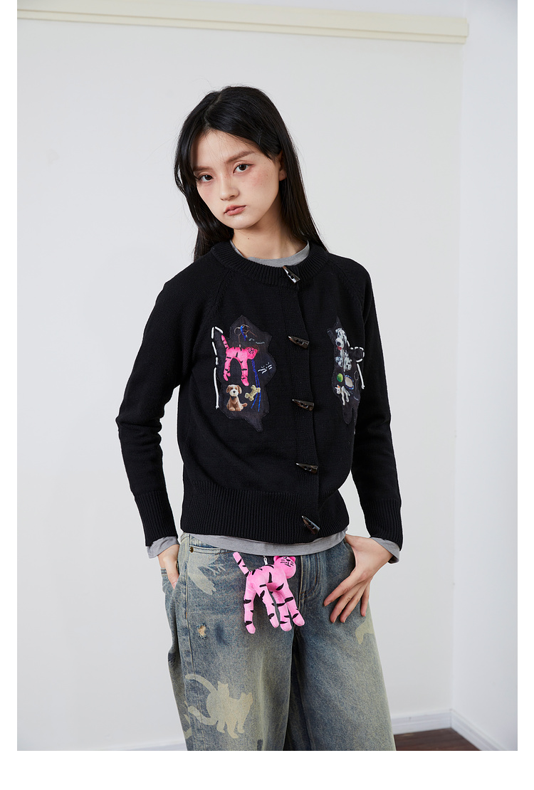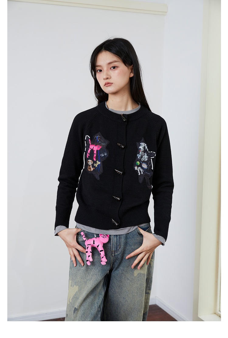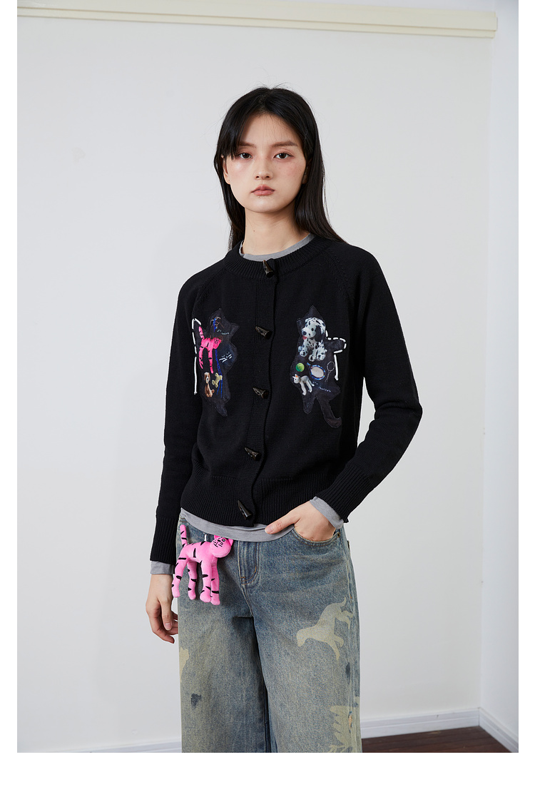 Mood Like Me/MMY2416/可爱猫咪狗狗贴布绣开衫毛衣