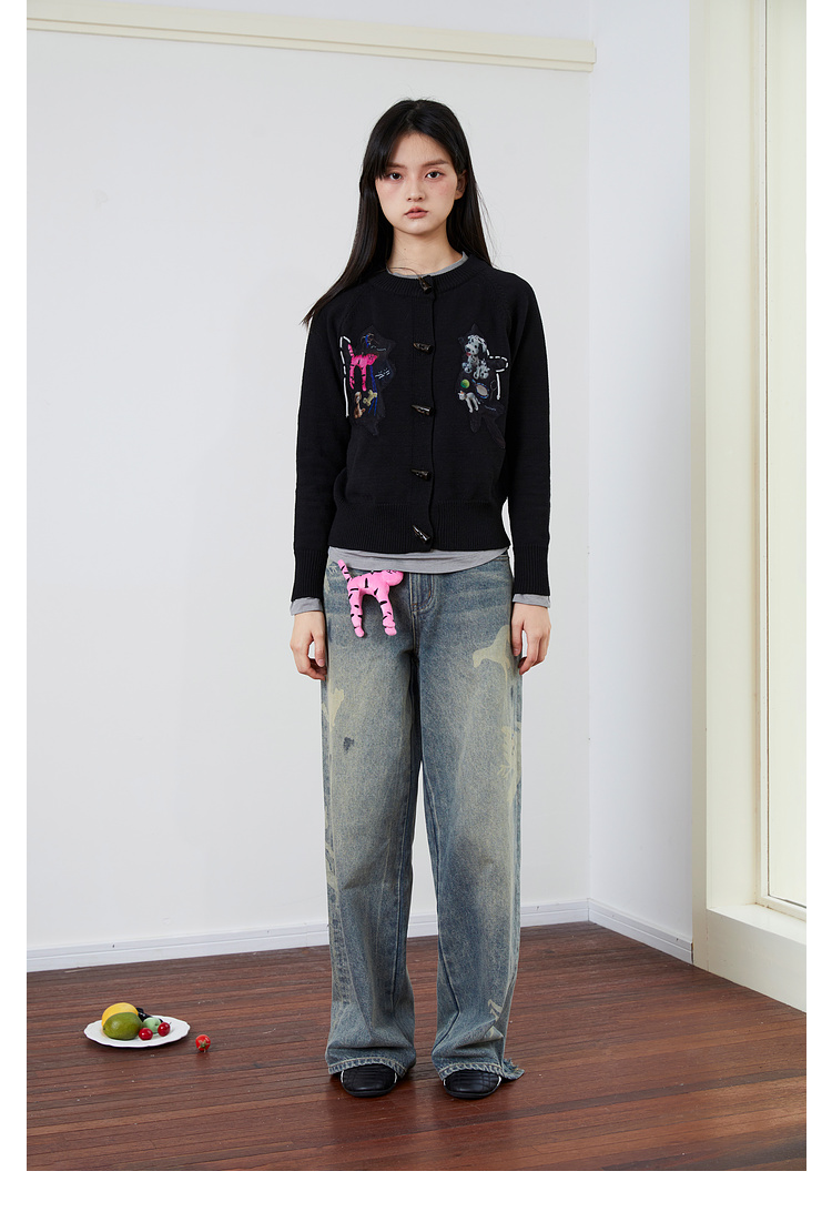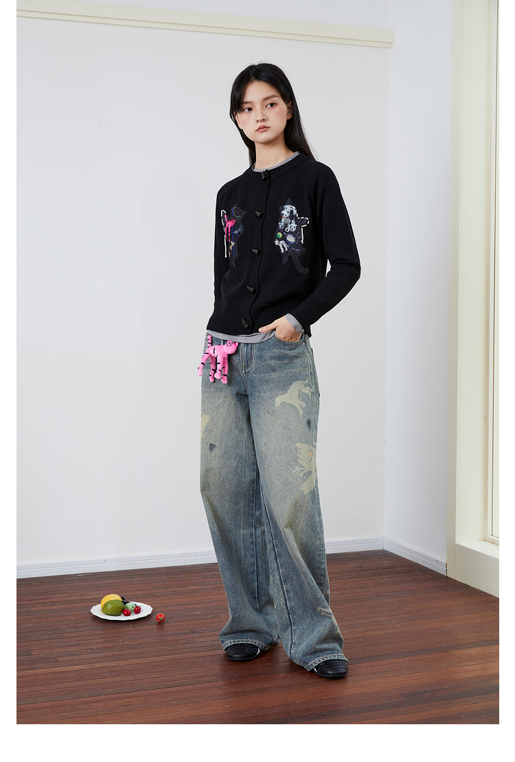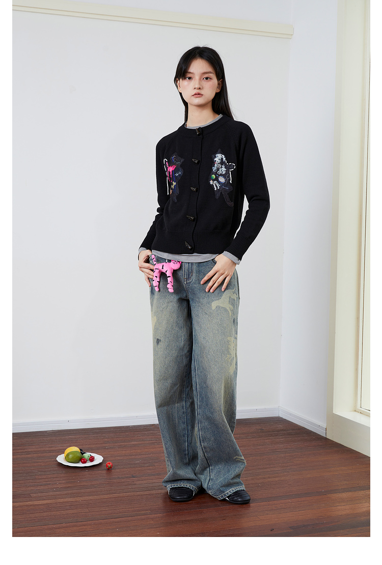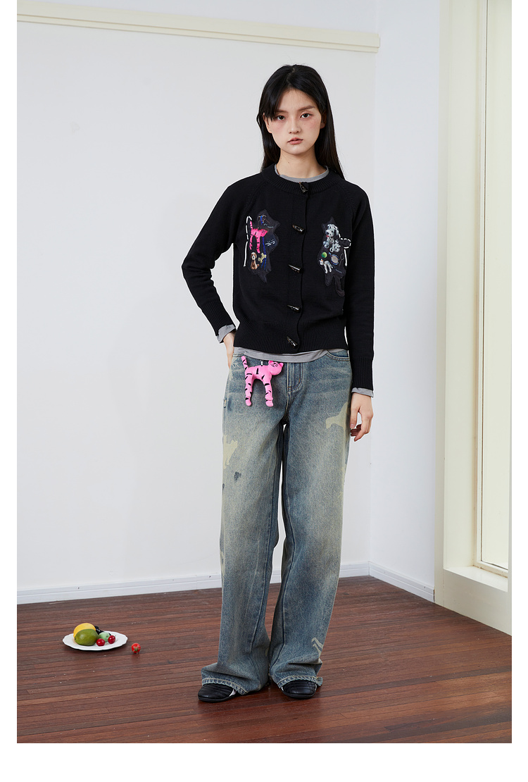 Mood Like Me/MMY2416/可爱猫咪狗狗贴布绣开衫毛衣
