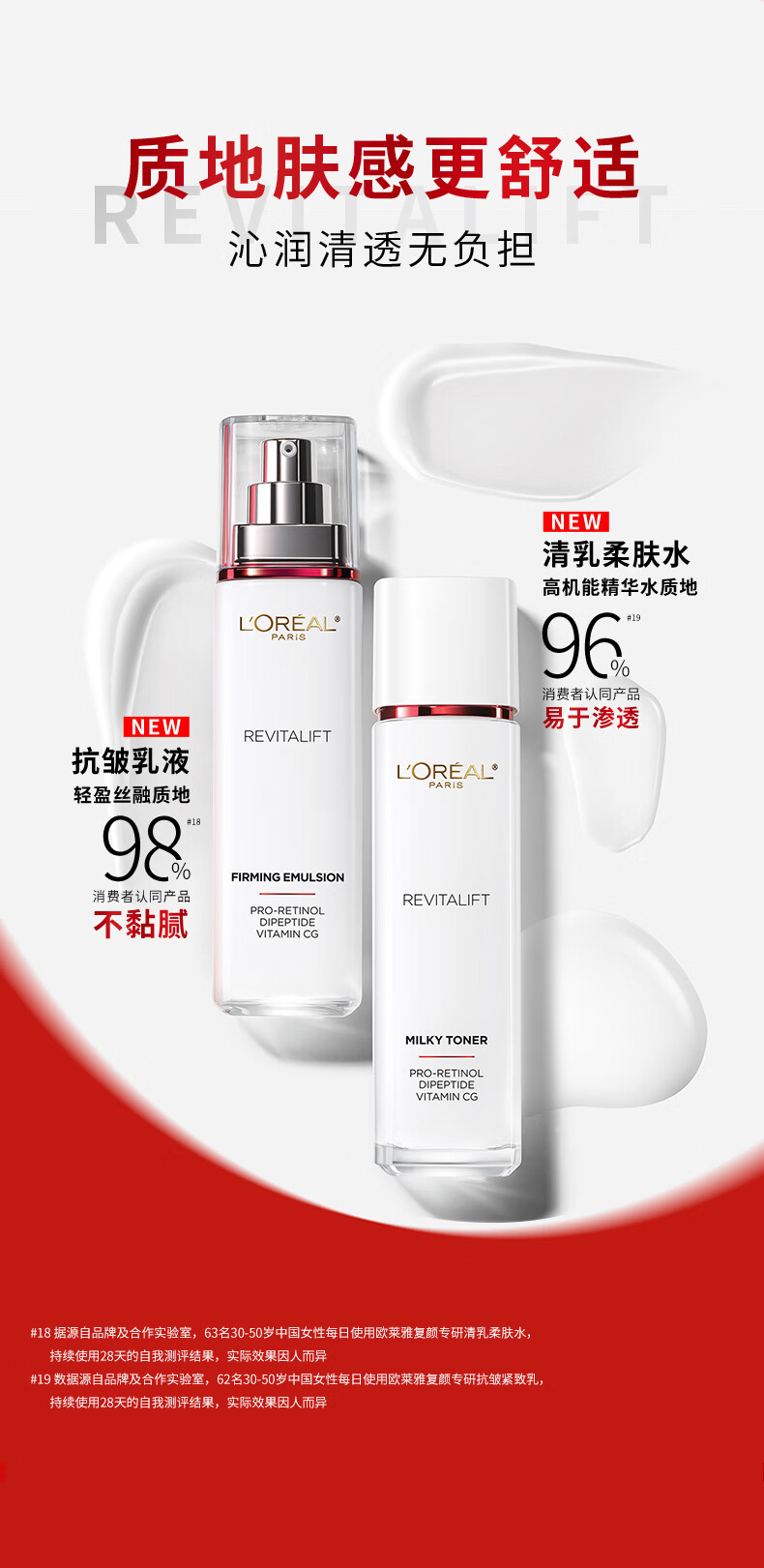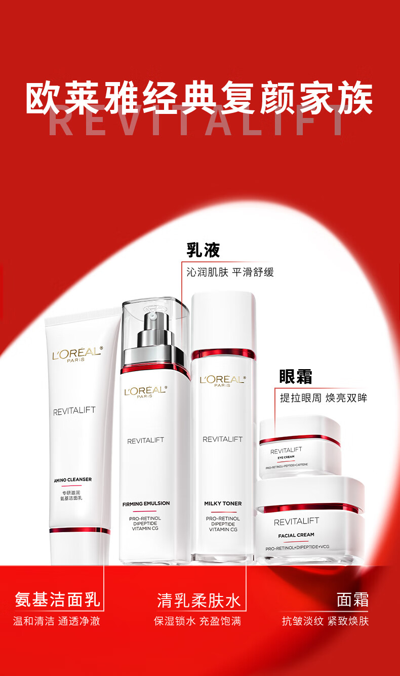 巴黎欧莱雅复颜专研清乳柔肤水+抗皱紧致乳2+1组合/1组 (65ml*2+110ml*1)