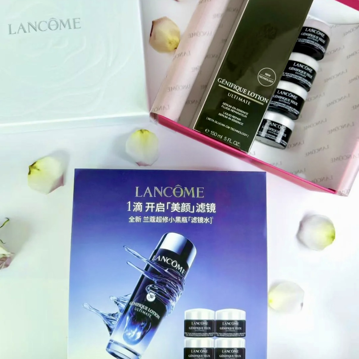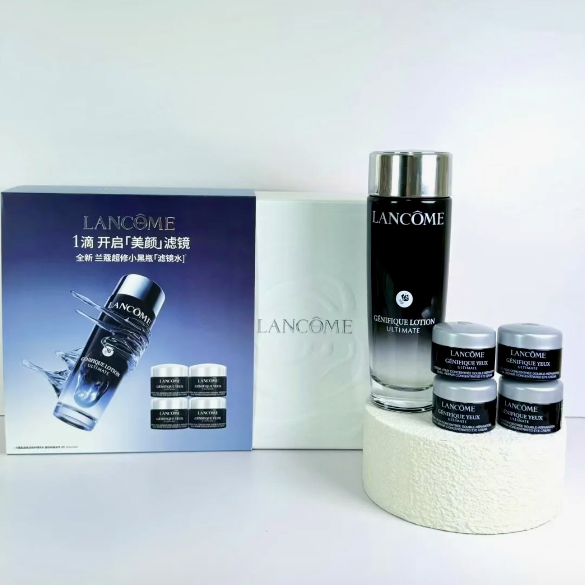 【礼盒礼袋】兰蔻小黑瓶滤镜水套组(滤镜水150ml+眼霜5m*4)-H736