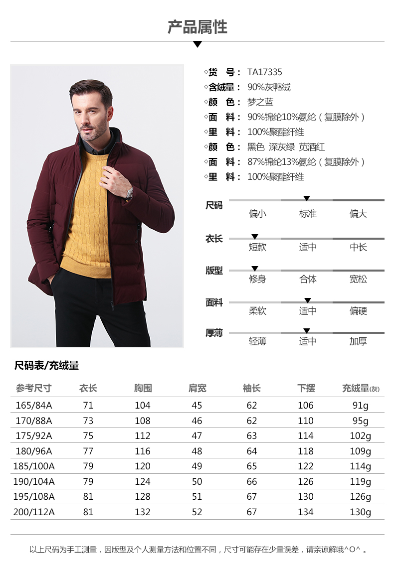 TA17335 坦博尔秋冬商务羽绒服男士修身时尚立领羽绒外套