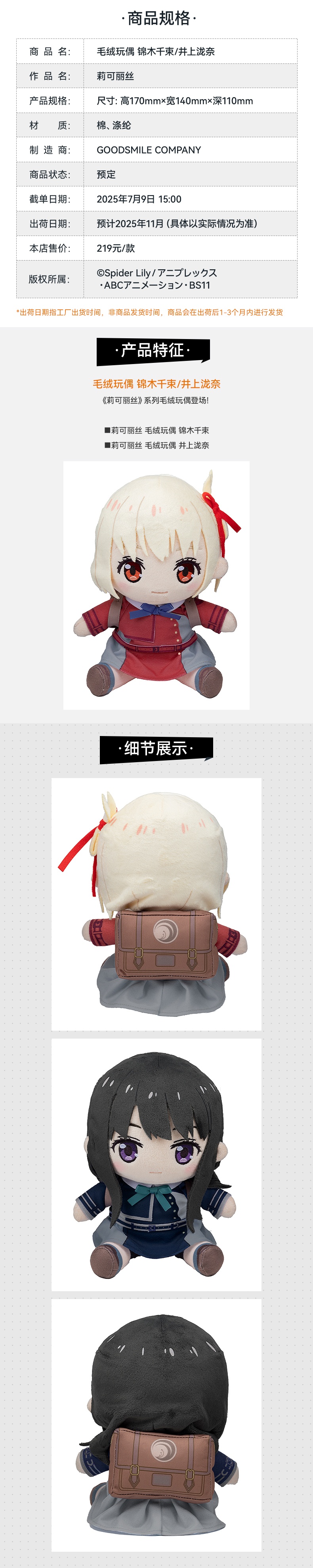 【GSC预售定金】毛绒玩偶 锦木千束/井上泷奈 莉可丽丝