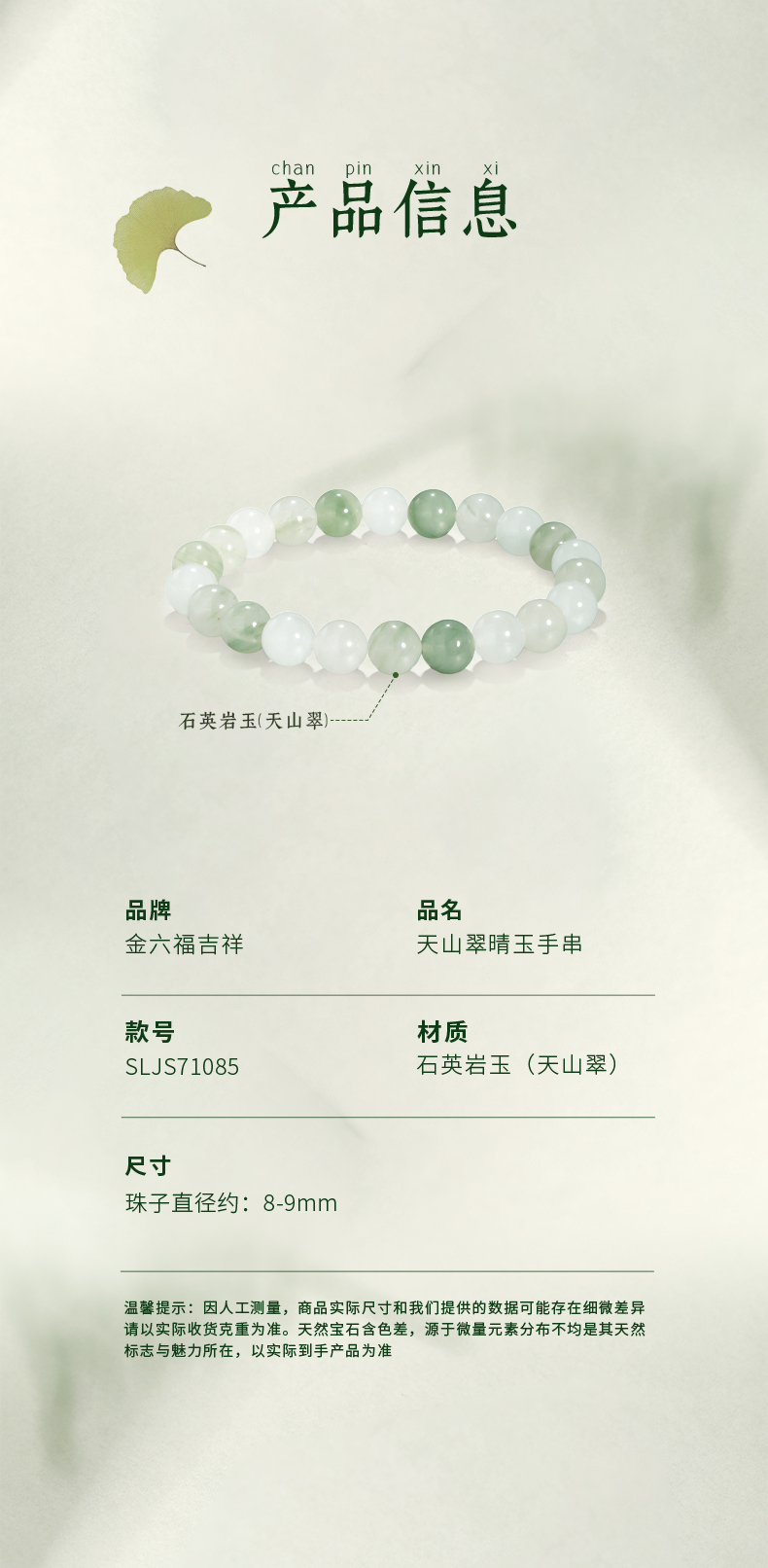 金六福吉祥晴玉手串(发货只有绒布袋和产品,介意慎拍)★