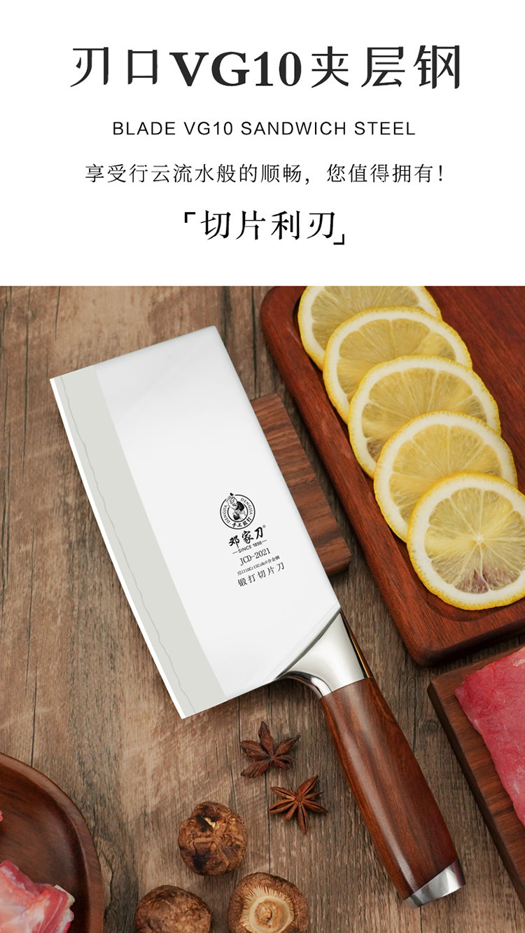 【代发】邓家刀高品质菜刀三合夹钢锻打家用切片刀锋利轻便超薄切菜刀