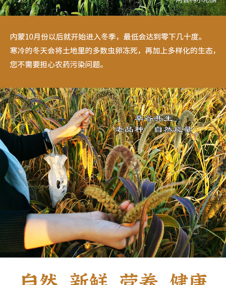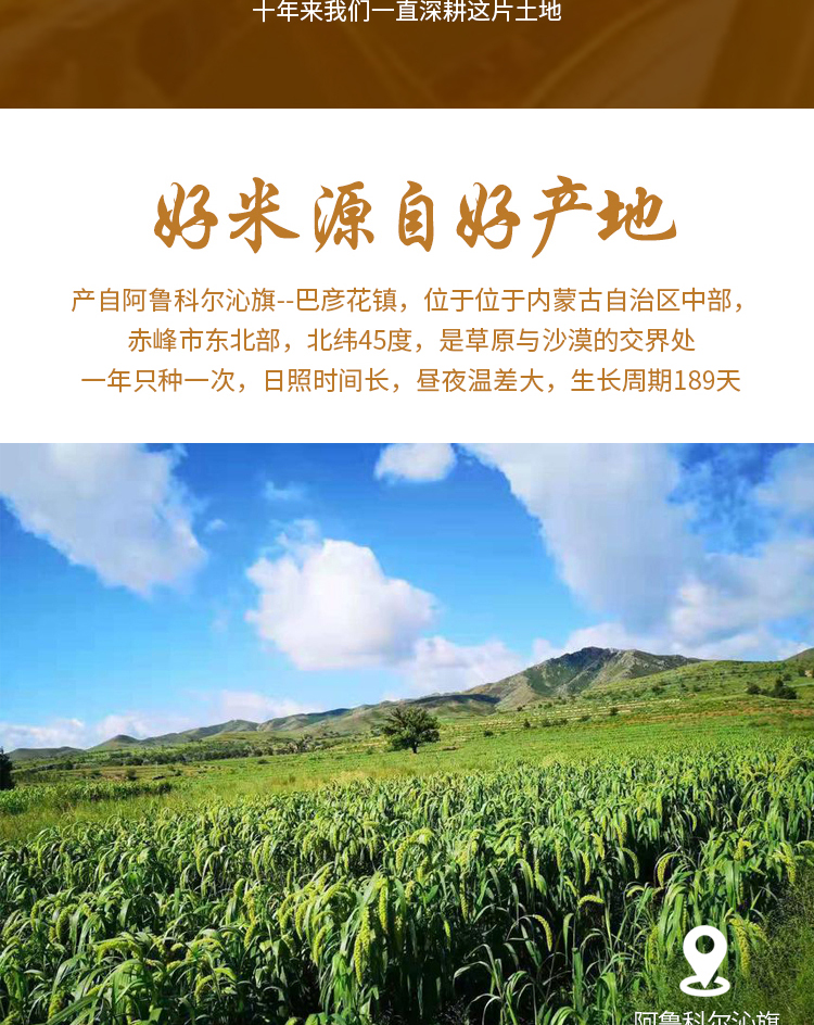 1、这款小米来自世界小米的发源地——内蒙赤峰阿鲁科尔沁旗,在草原与沙漠交界处;
