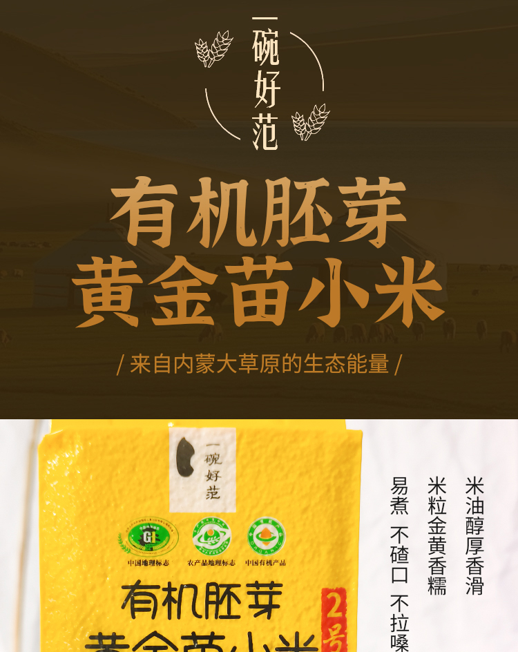 【品名/规格】【一碗好范】有机胚芽黄金苗2号小米(450g/袋)