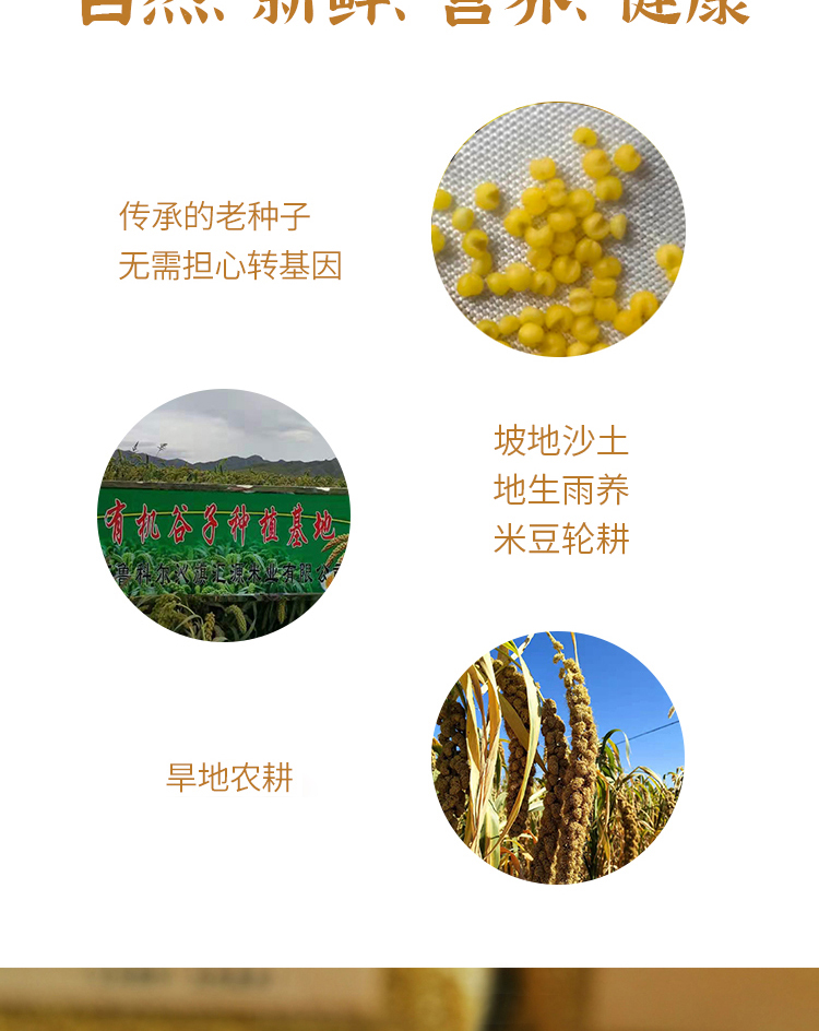 4、天生地养,不用化学肥料,小米和绿豆间年轮作种植,绿豆的根瘤菌用来作为来年小米的肥料;