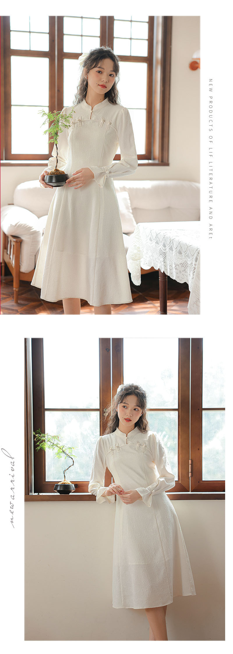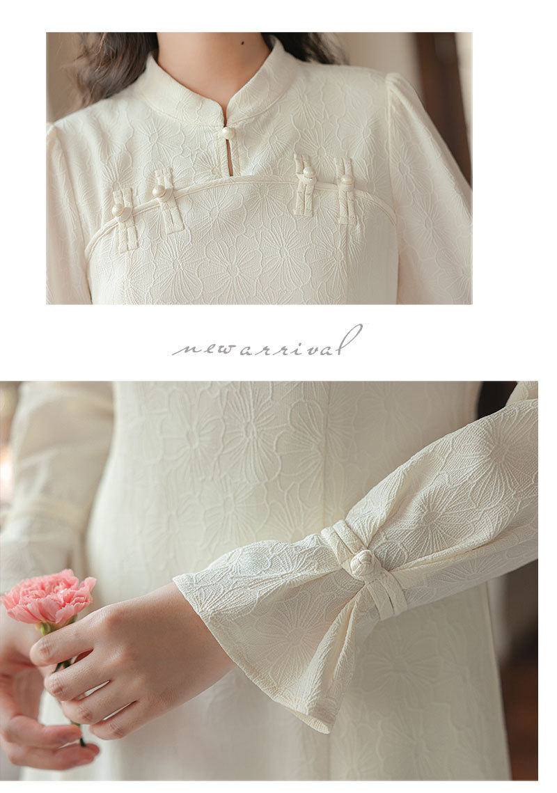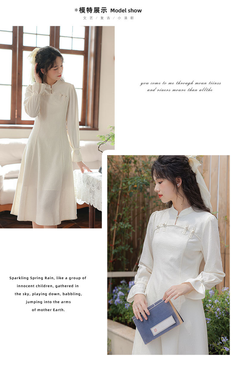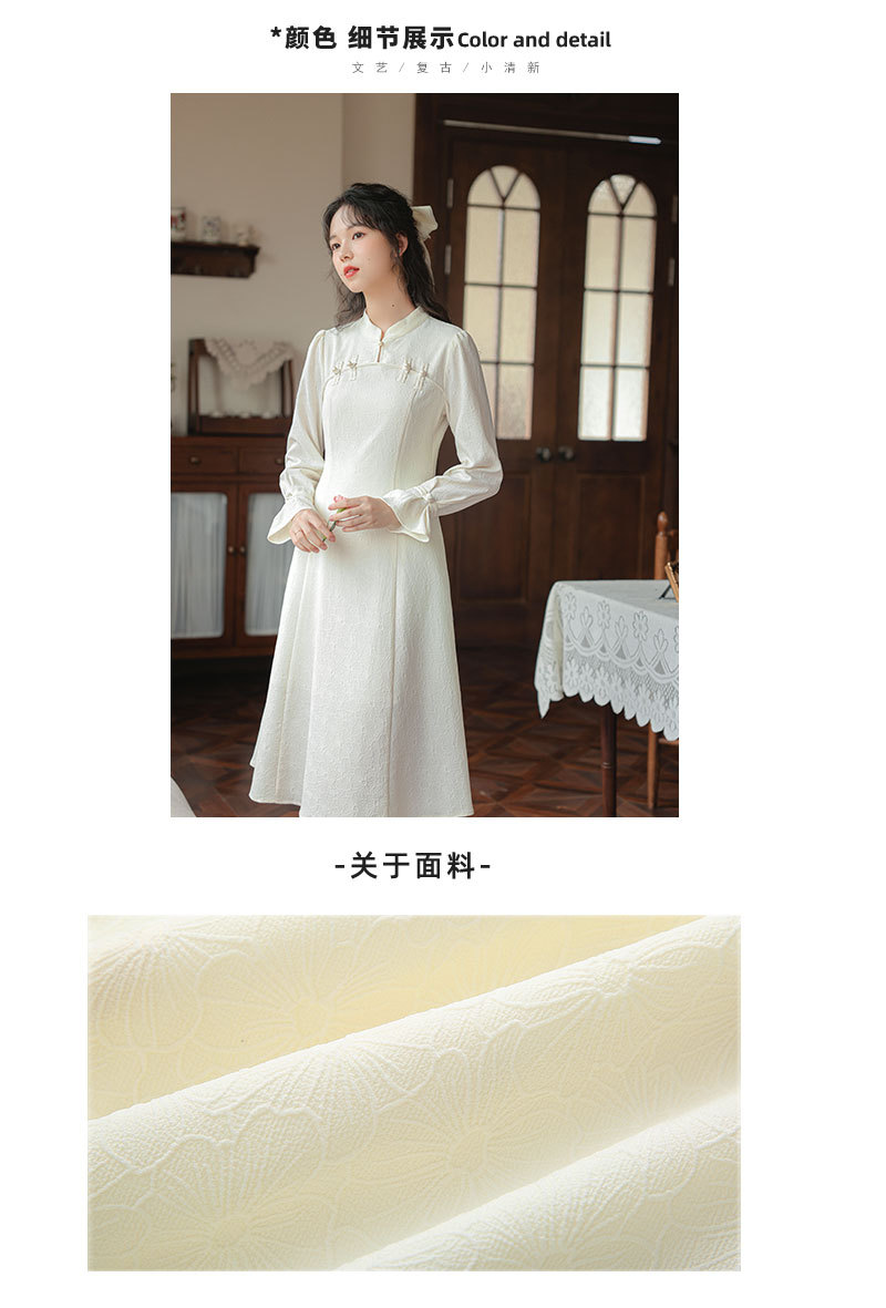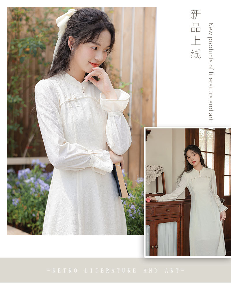 2025早春【新中式旗袍 改良年轻款白色】回门订婚敬酒 长袖连衣裙 复古盘扣