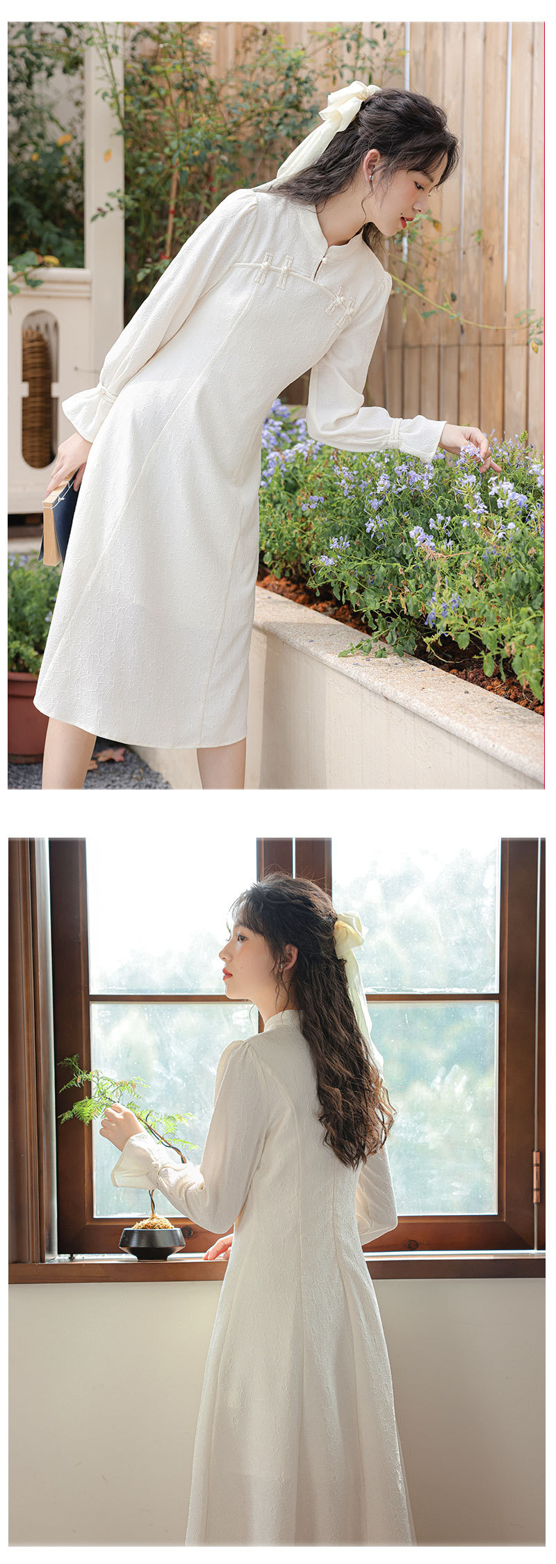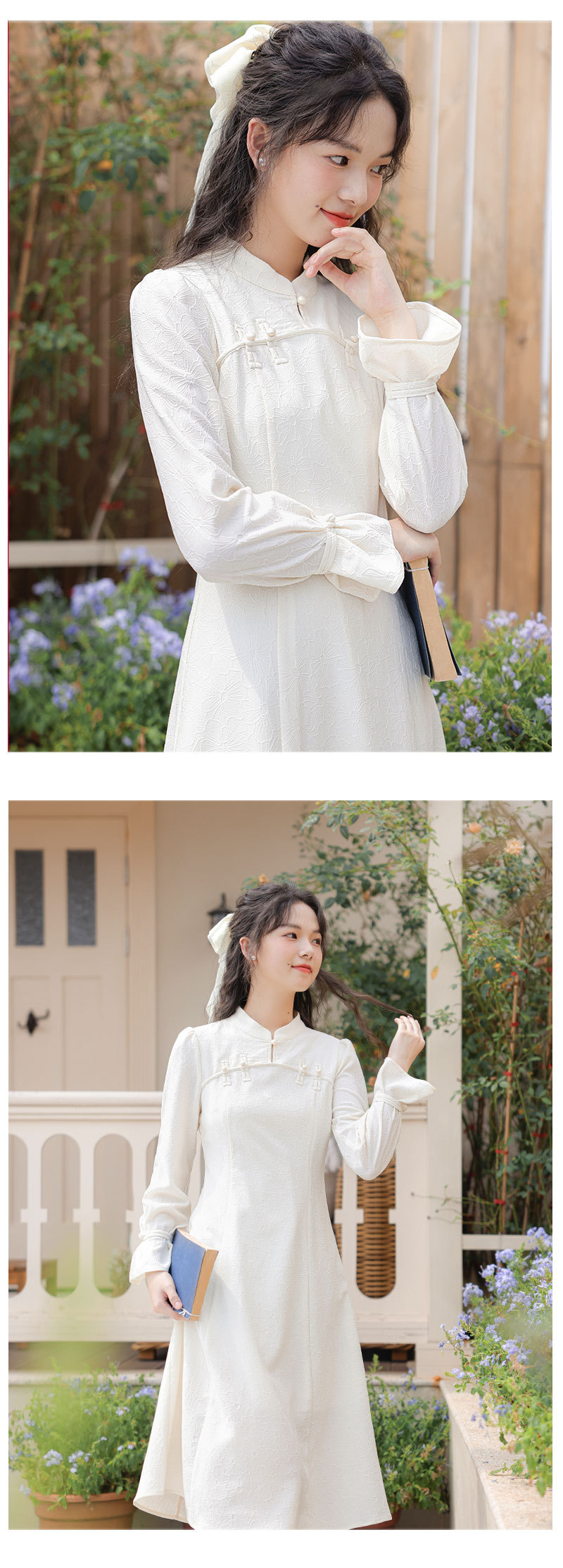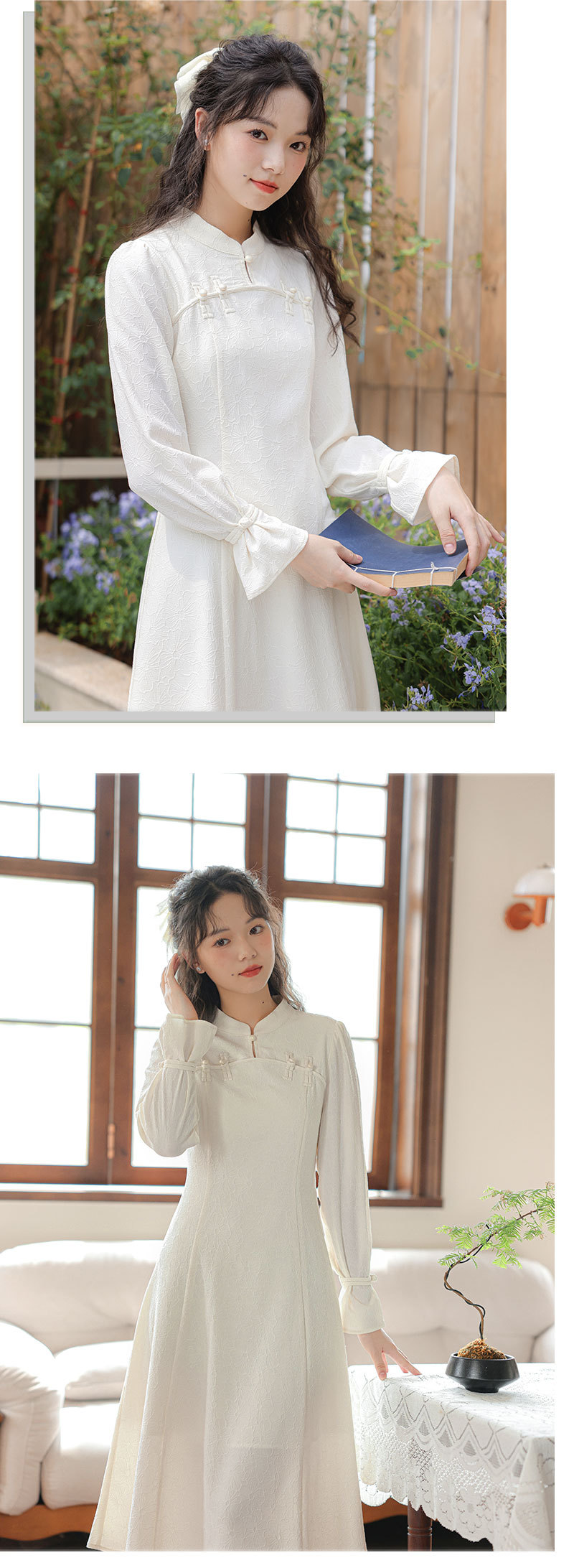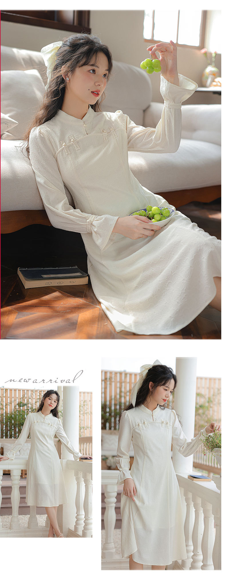 2025早春【新中式旗袍 改良年轻款白色】回门订婚敬酒 长袖连衣裙 复古盘扣