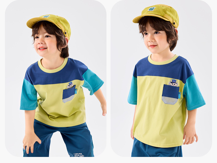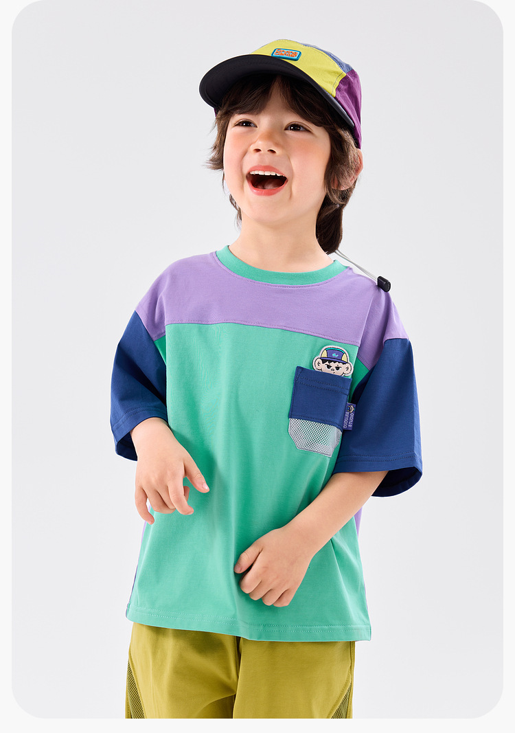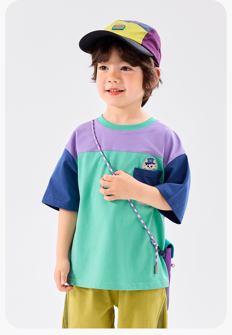 嘟嘟家男童短袖T恤夏季新款儿童撞色拼接半袖上衣宝宝体恤童装潮