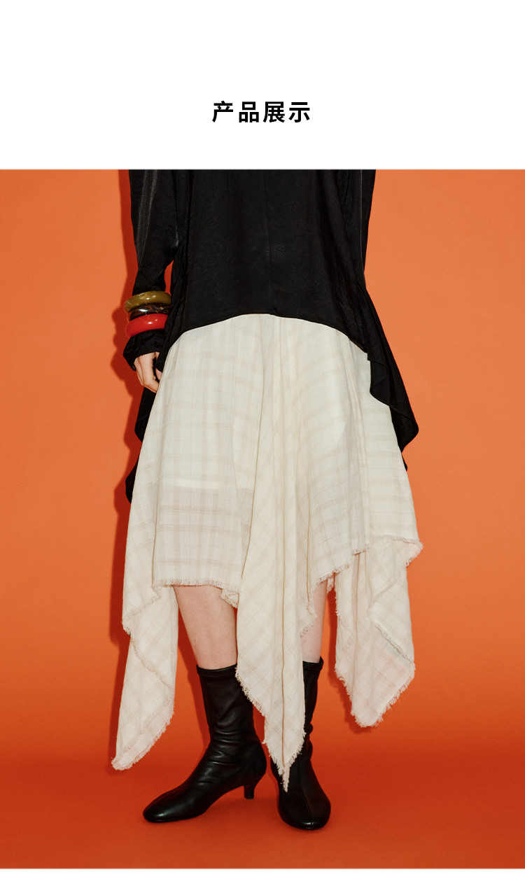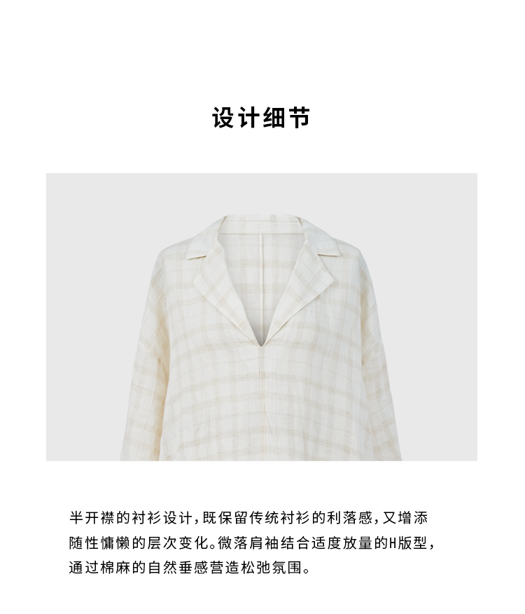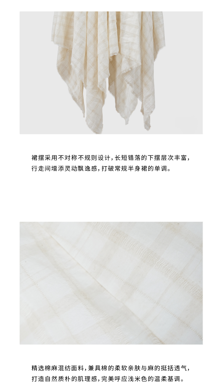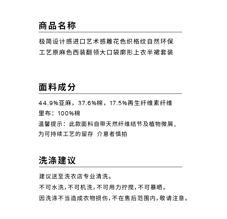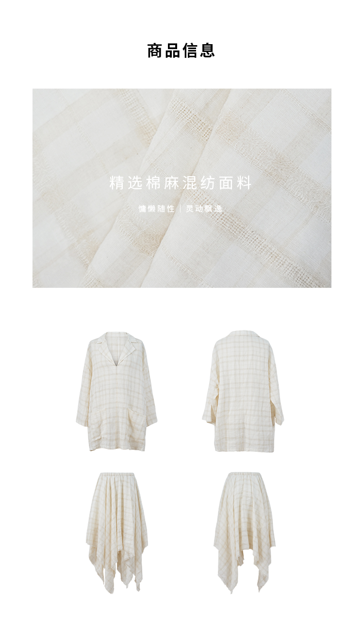 HIDEMI 极简设计感进口艺术感雕花色织格纹自然环保工艺原麻色西装翻领大口袋廓形上衣半裙套装 上衣/不规则半裙