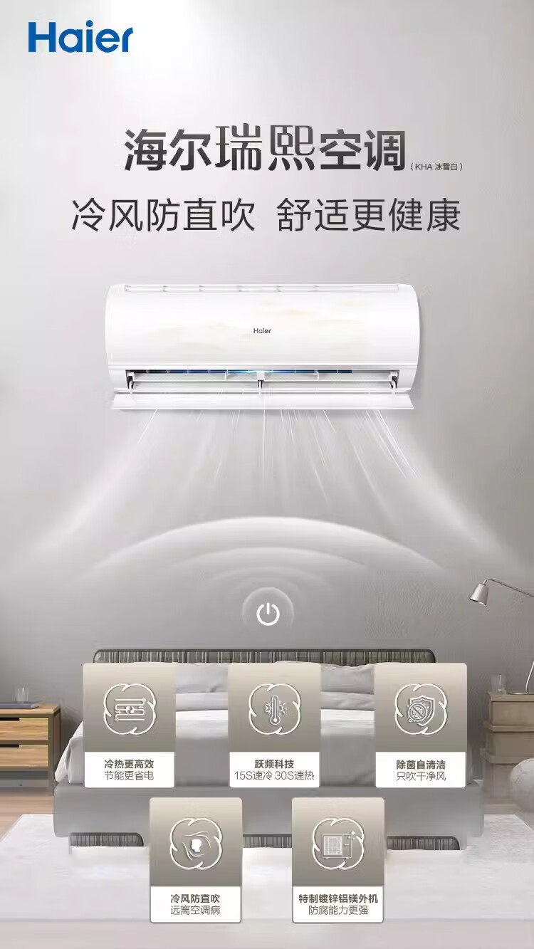 海尔(Haier) 空调挂机瑞熙 大1.5新一级变频冷暖壁挂式自清洁除菌空调 海尔 KFR-35GW/B3KHA81U1
