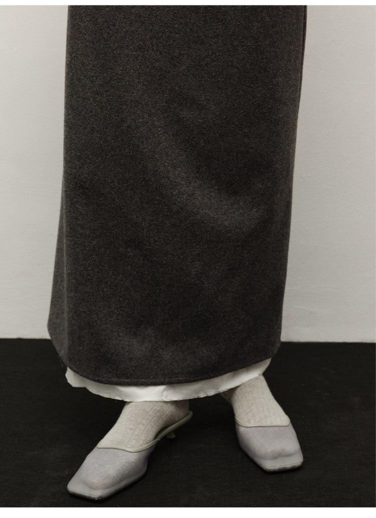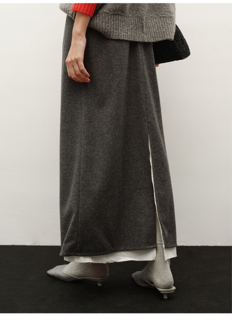 HIDEMI黑色简约大口袋设计感半身A字长裙