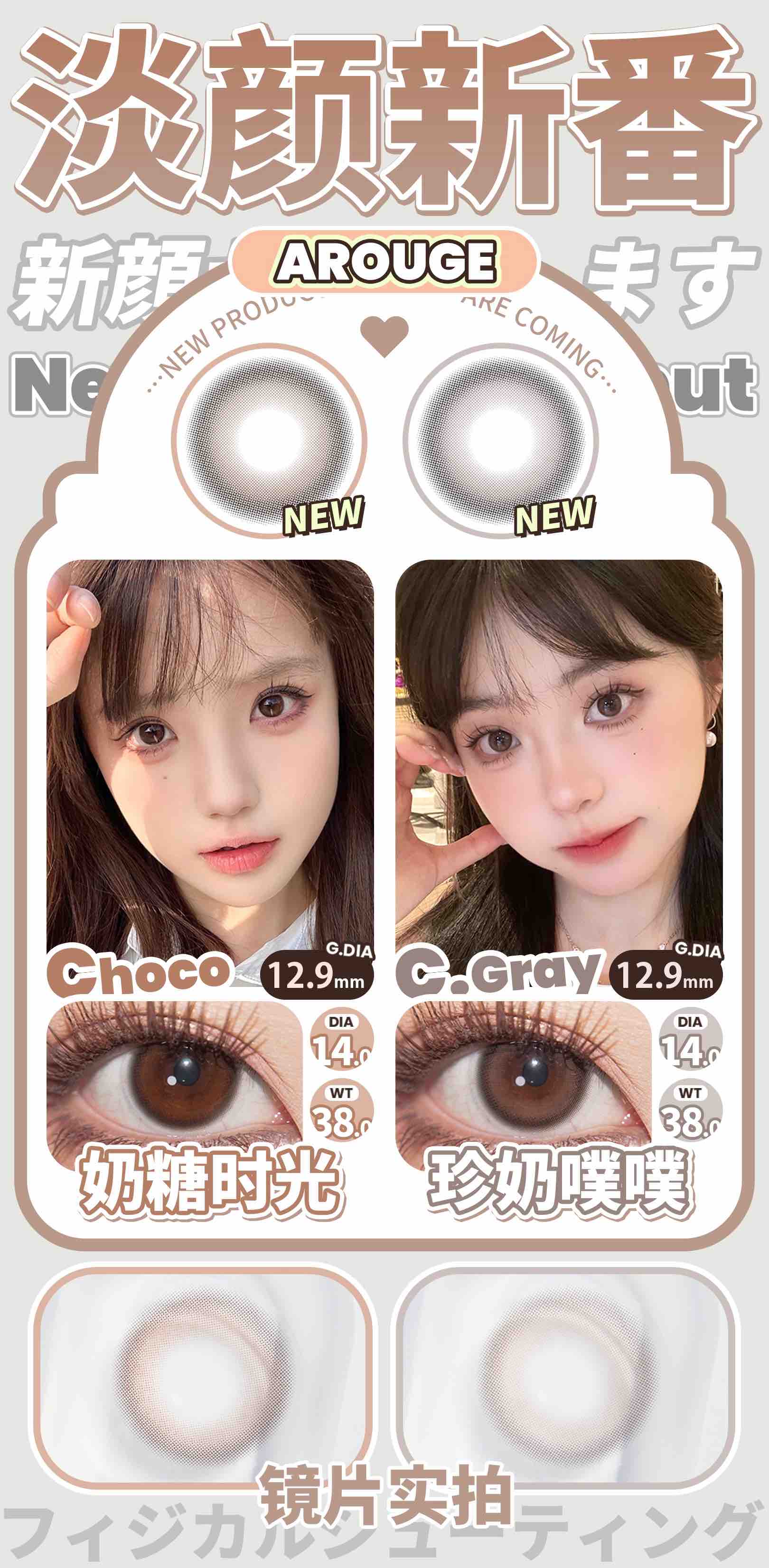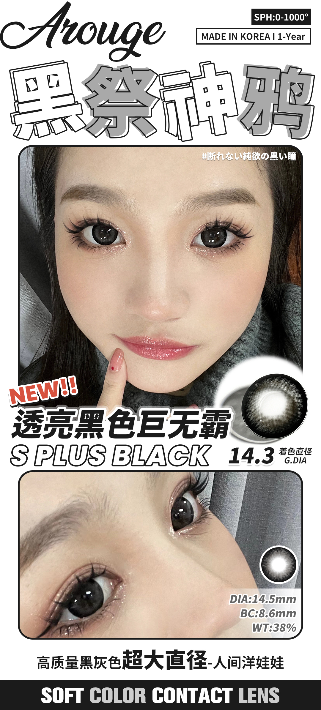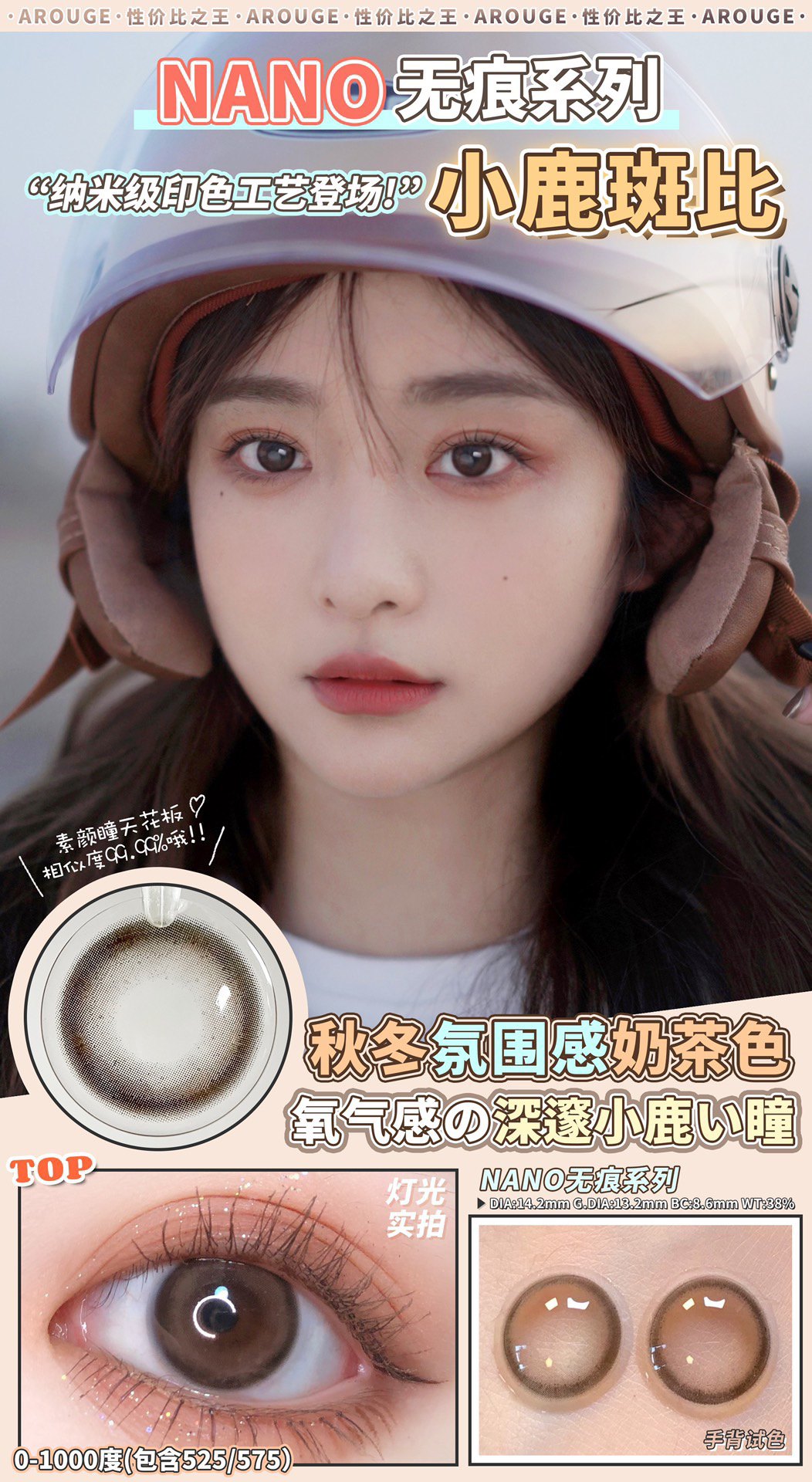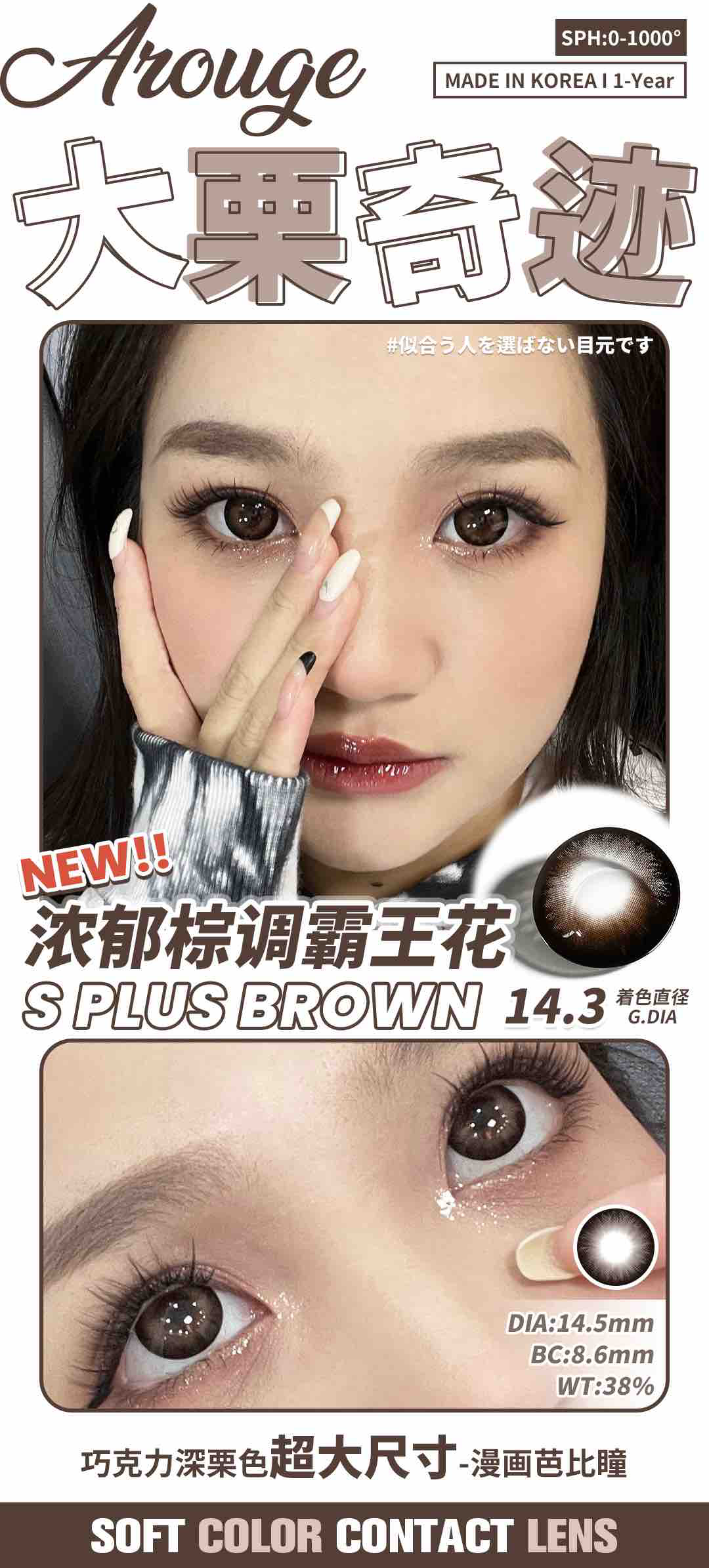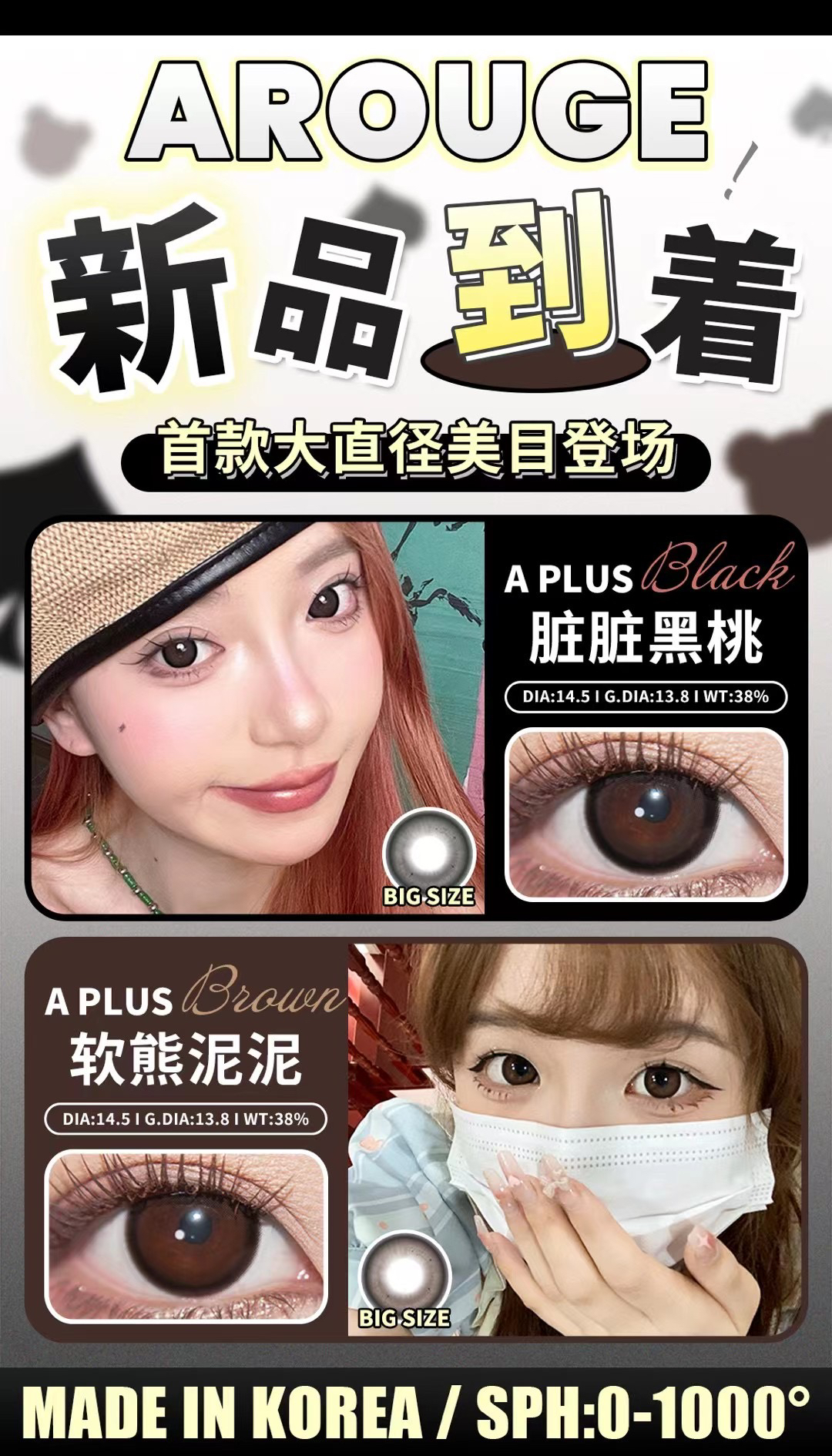 AROUGE韩产年抛半年抛美瞳艺考之神/小鹿斑比/黑棕