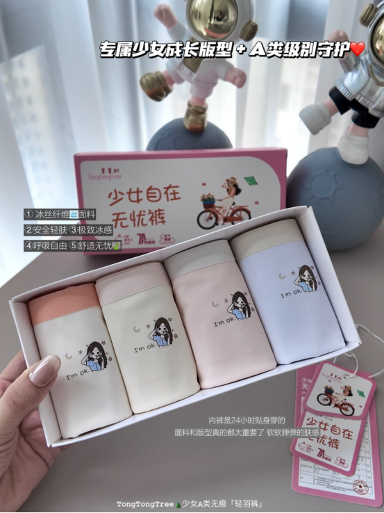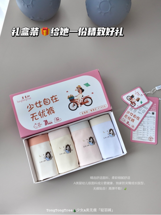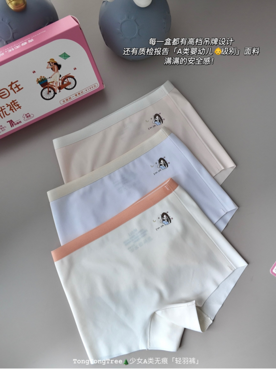 💥童童树T-8805#少女A类无痕「轻羽裤」👏限时活动:4条礼盒装💰包邮🉐速度抢!秒完为止! 👉 TongTongTree少女A类无痕“轻羽裤”!
