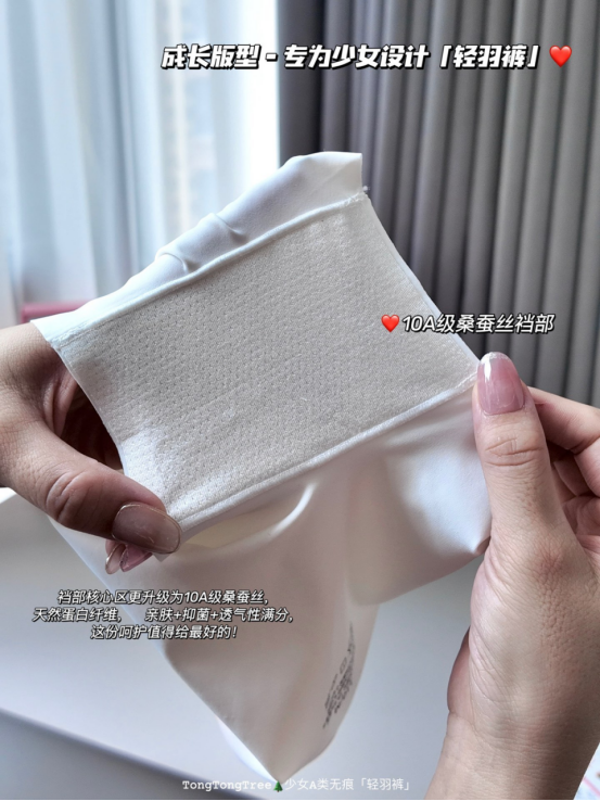 ✅它不是一条普通的内裤,少女轻羽裤: 1⃣️成长期的专属守护者 (A类婴幼级面料 + 10A桑蚕丝裆) 2⃣️闷热的终结者 (黄金配比纤维:81.1%锦纶+18.9%氨纶,透气吸湿实测王者) 3⃣️尴尬痕迹的隐形者 (真·无痕,紧身裤自由) 4⃣️夹臀烦恼的解放者 (防夹臀版型,活动自如) 5⃣️舒适弹性的提供者 (360°高弹包容,胖瘦无忧)