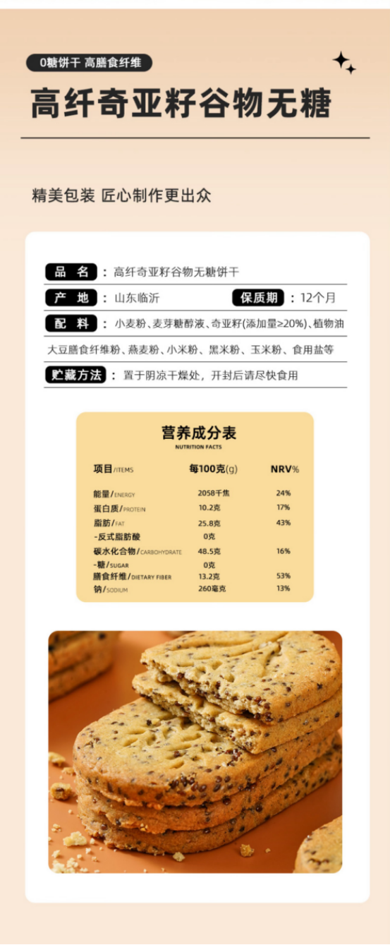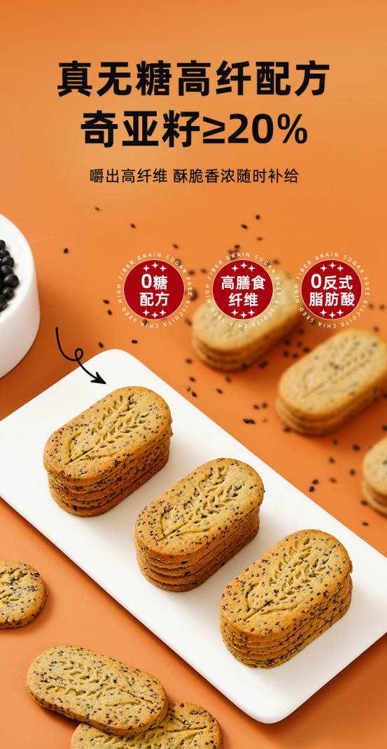 真无糖 高膳食纤维 浓浓的奇亚籽醇香 谷物粗粮 香醇酥脆 无糖粗粮饼干🤤好吃又饱腹