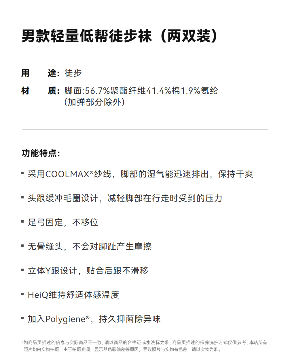 KAILAS凯乐石 户外运动 男款轻量低帮徒步袜(两双装)KH2402106【Z】