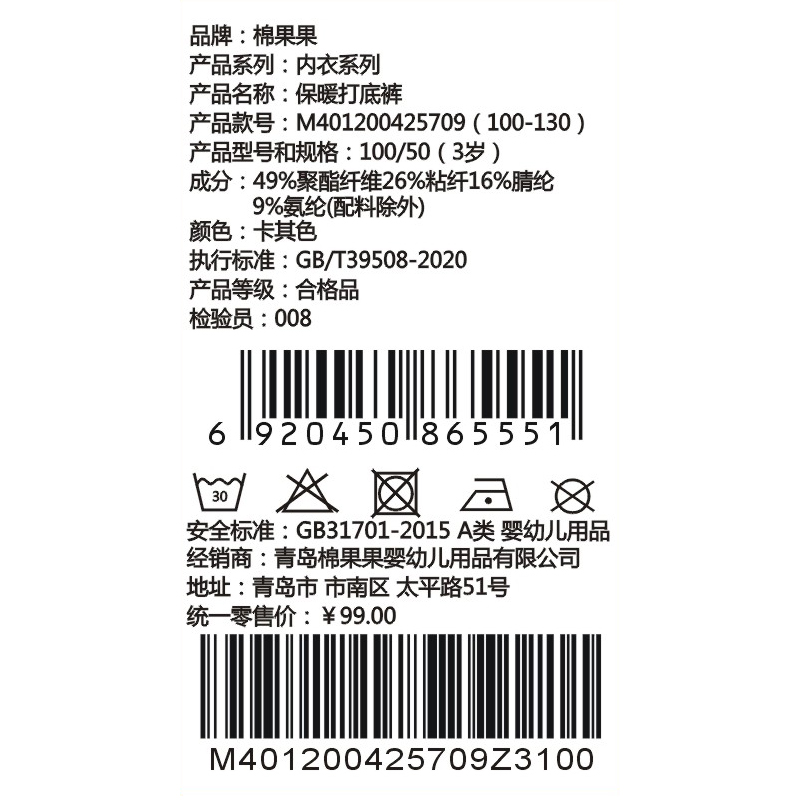 | 臀围(裆上5cm) | 28.5 | 30 | 32 | 34 |