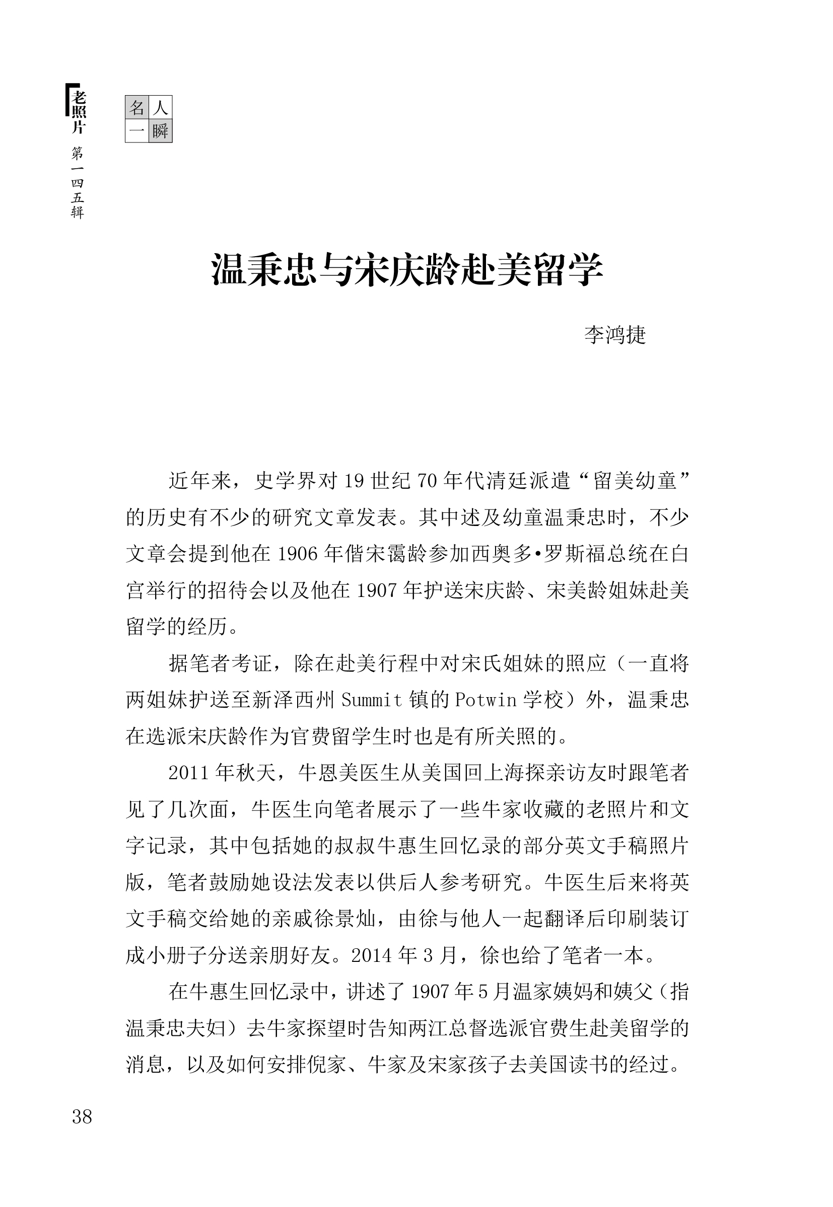 李鸿捷 温秉忠与宋庆龄赴美留学