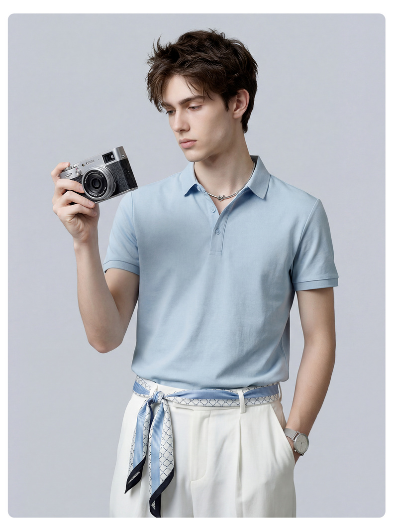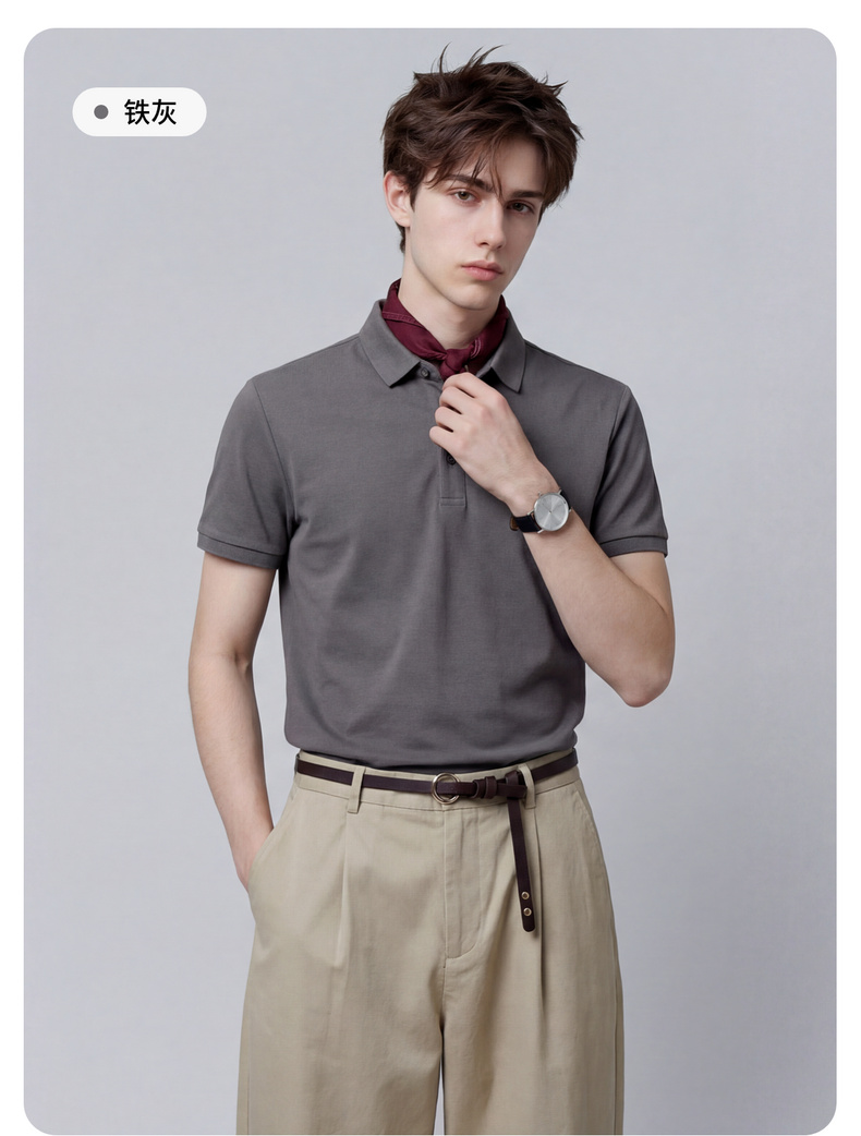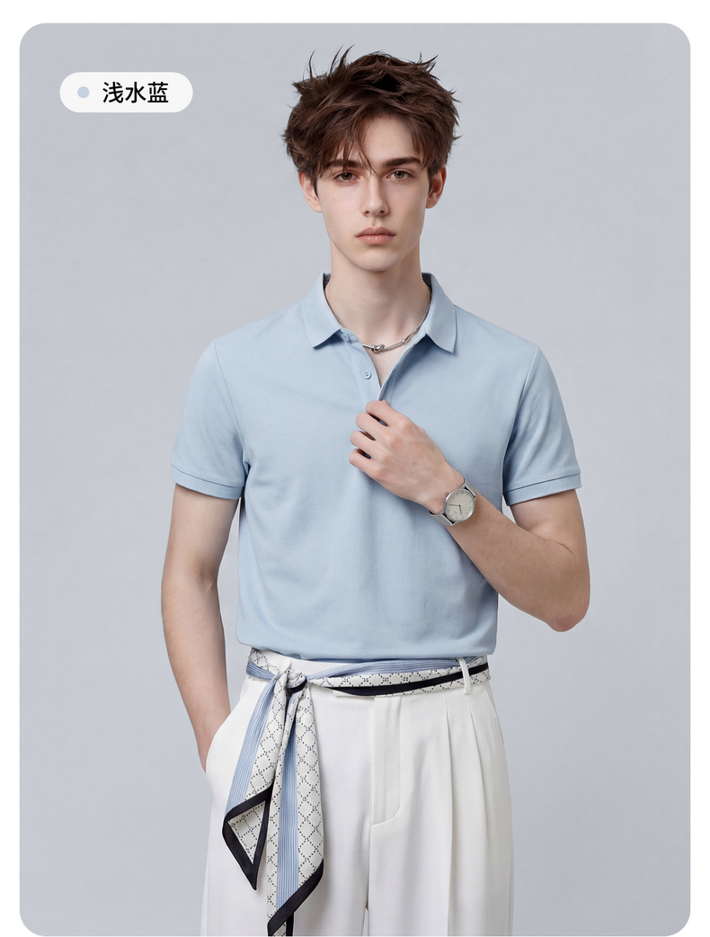 【含棉】圣得西男士帅气短袖polo衫2026新款春季舒适商务翻领上衣