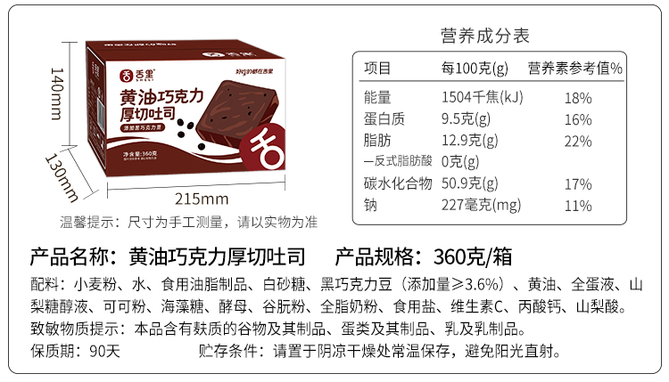 【舌里黄油巧克力厚切360g/箱】黑巧风味 口感细腻