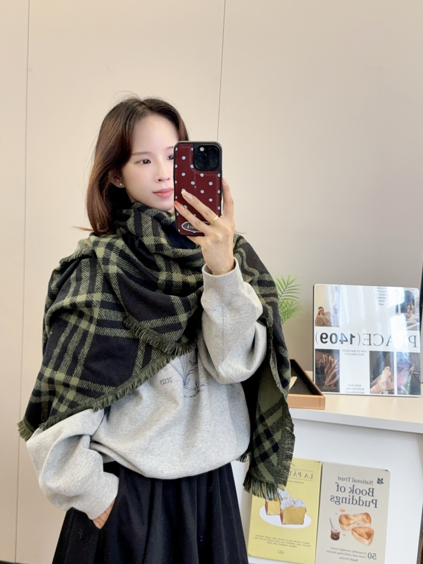 柔软羊毛丝质混纺面料打造,双层双色,轻盈干练四季百搭~精纺格纹图案搭配马术骑士徽标,双面对比色设计,男女同款 点缀造型、防晒披肩,搭配风衣外套,英伦风十足!多种搭配方式,兼具保暖性与奢华感。