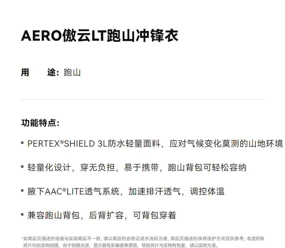 KAILAS凯乐石 户外运动 AERO傲云LIGHT跑山冲锋衣 KG2441213【Z】