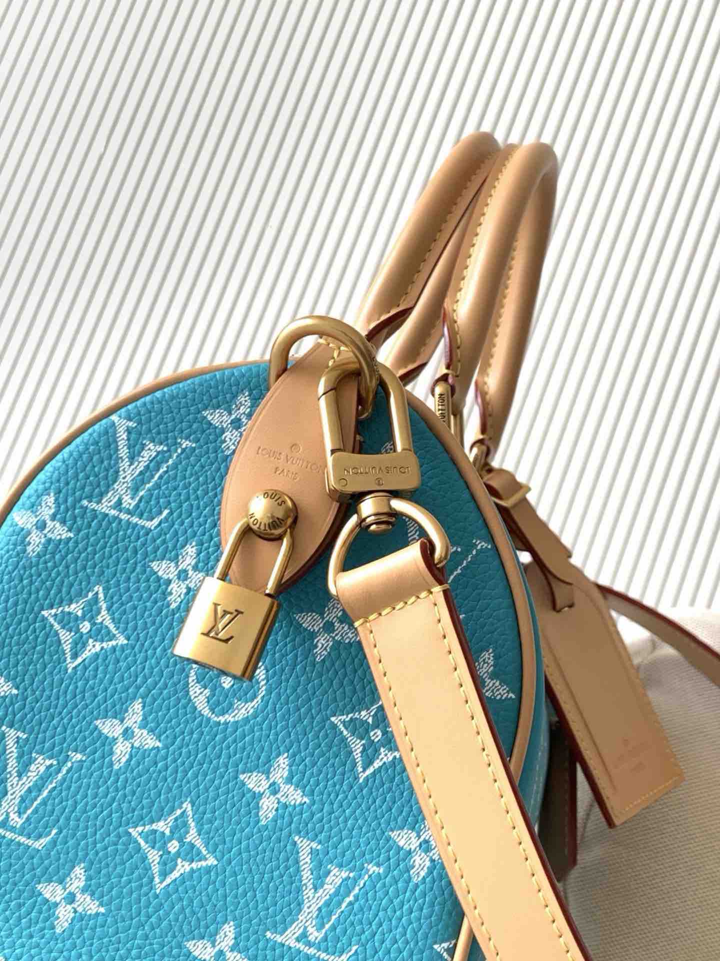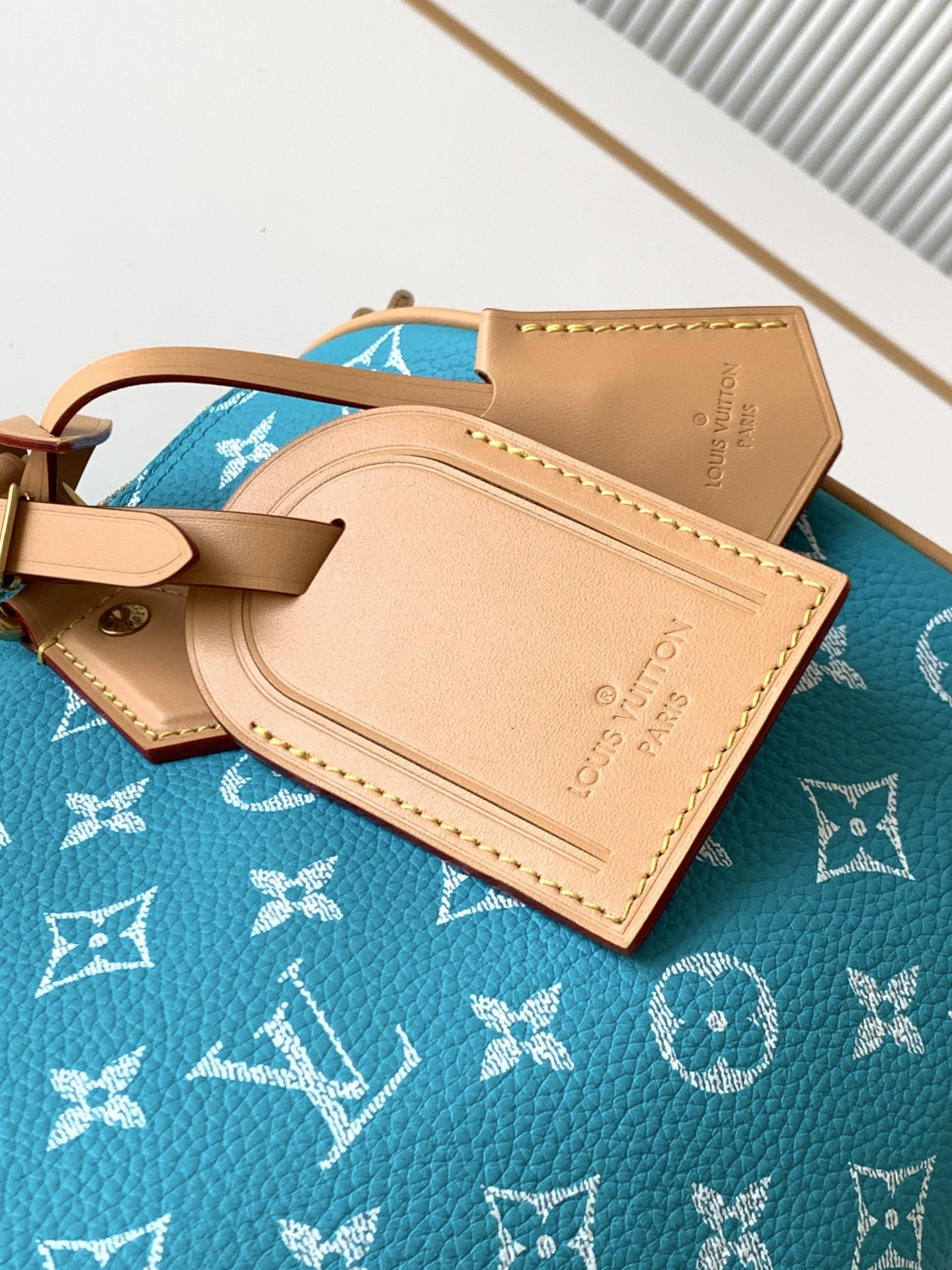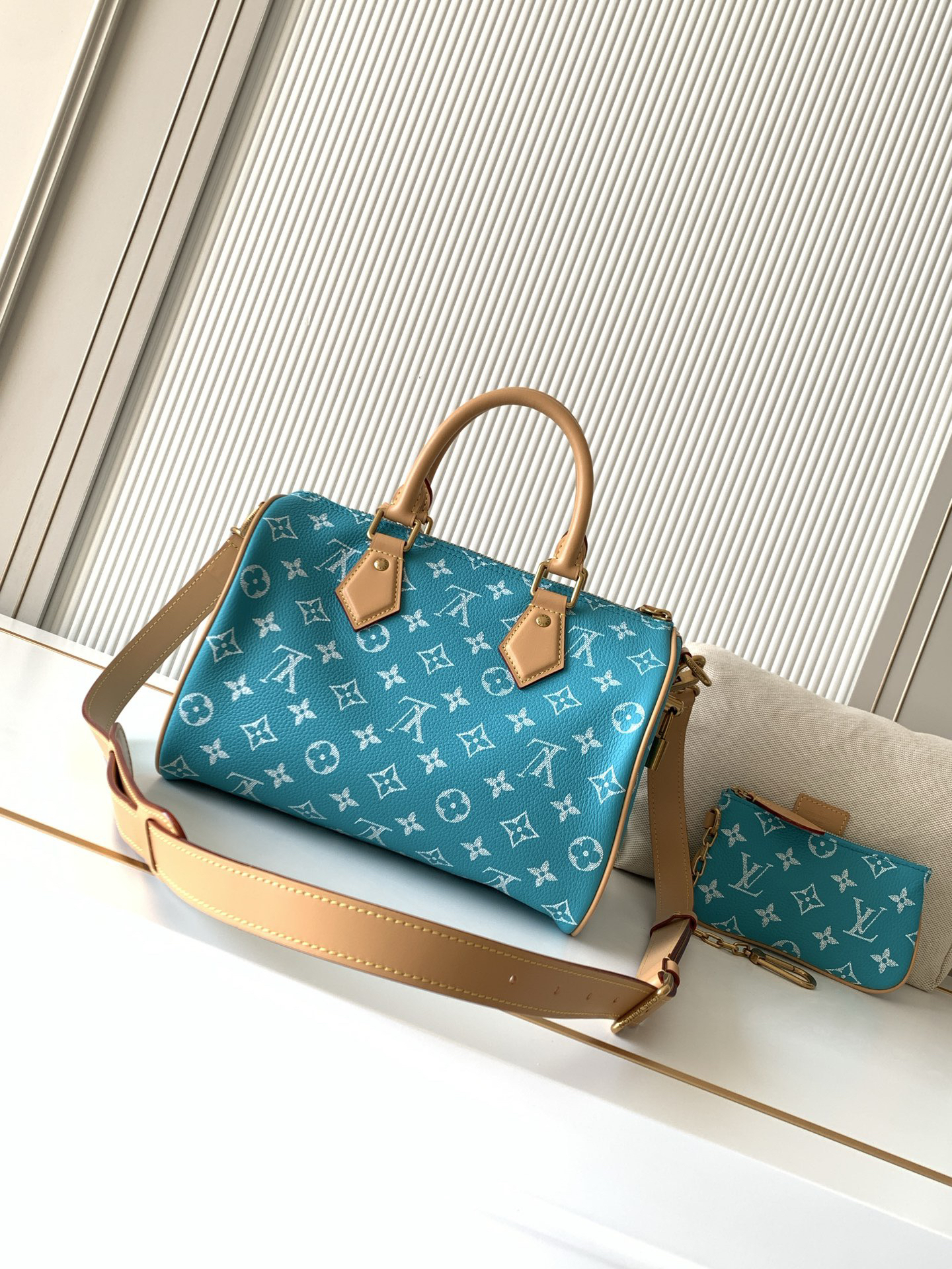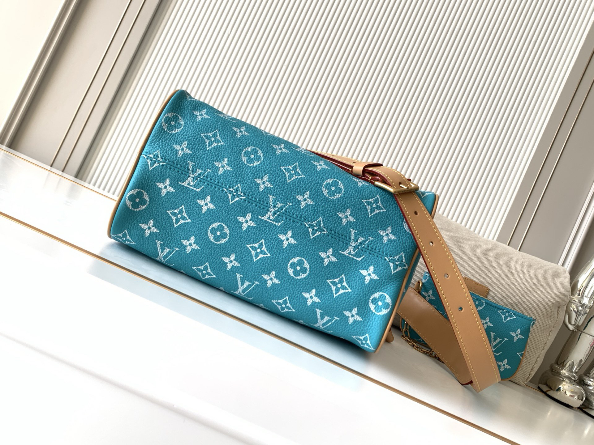 秋冬特惠💰1600 渠道级LV【全钢五金 MB163c01变码芯片】te级LV 全套包装 M11561湖水绿 本款Speedy P9 Bandoulière25手袋结合牛皮革包身和皮革饰边,兼具潮流格调与功能考量。手柄固定件的龙虾图案压纹在日本文化中象征长寿与繁荣,与可拆卸皮革收纳内袋一道延续Speedy P9系列的标志性元素。
