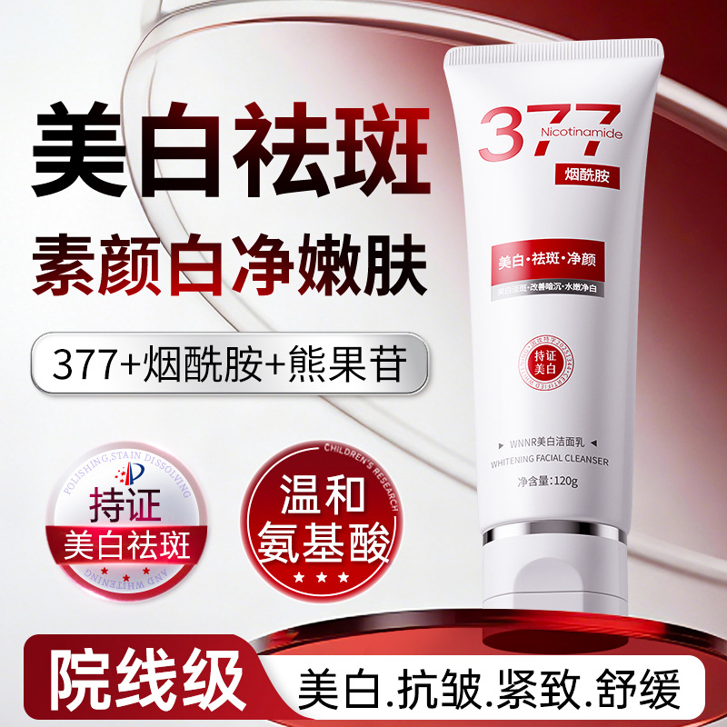 【2只】男女款洗面奶 377美白洗面奶温和清洁控油 白烟酰胺洁面乳,120g/ 支,国妆特字20251344