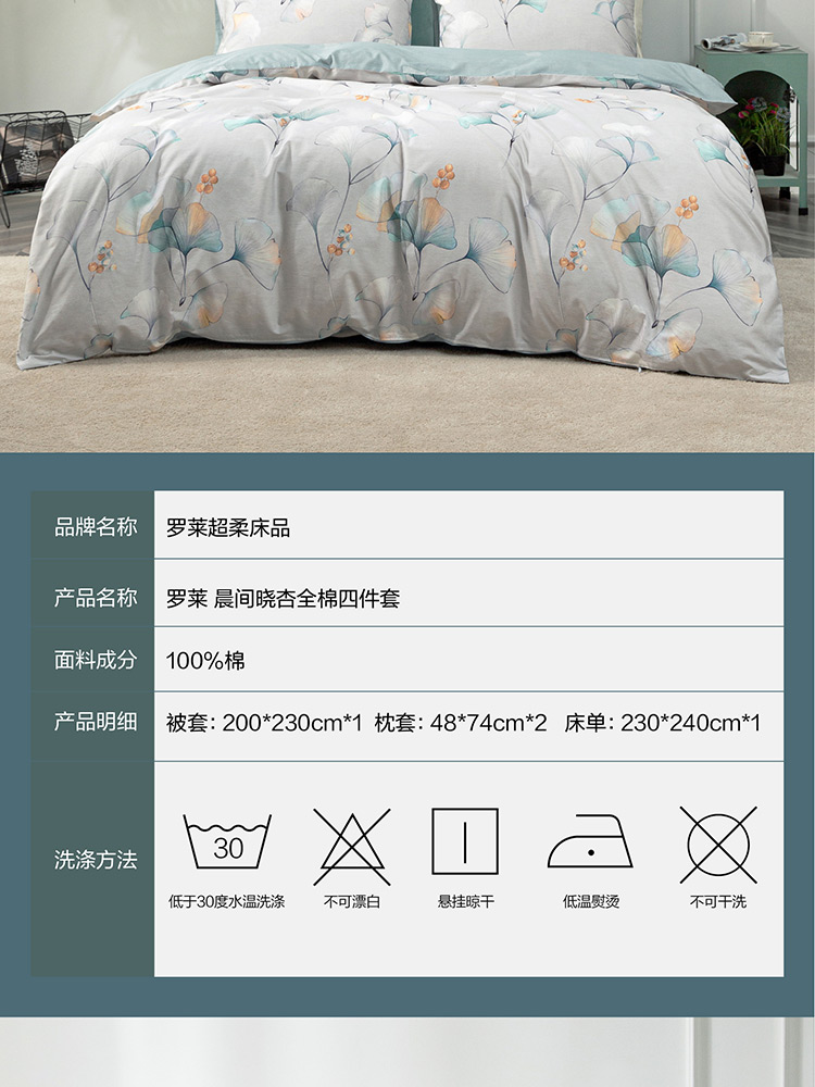 罗莱家纺晨间晓杏全棉四件套