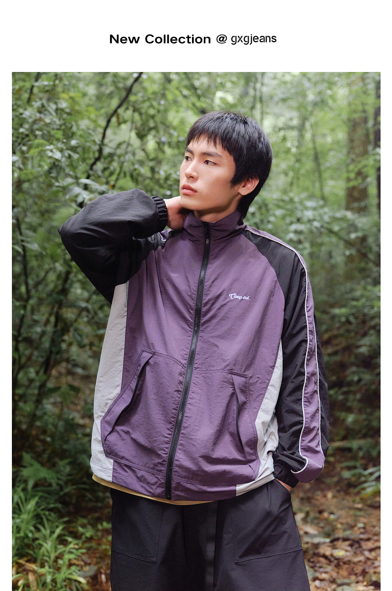 gxg.jeans男装 春季热卖紫色刺绣设计立领夹克JFD12100461