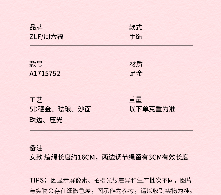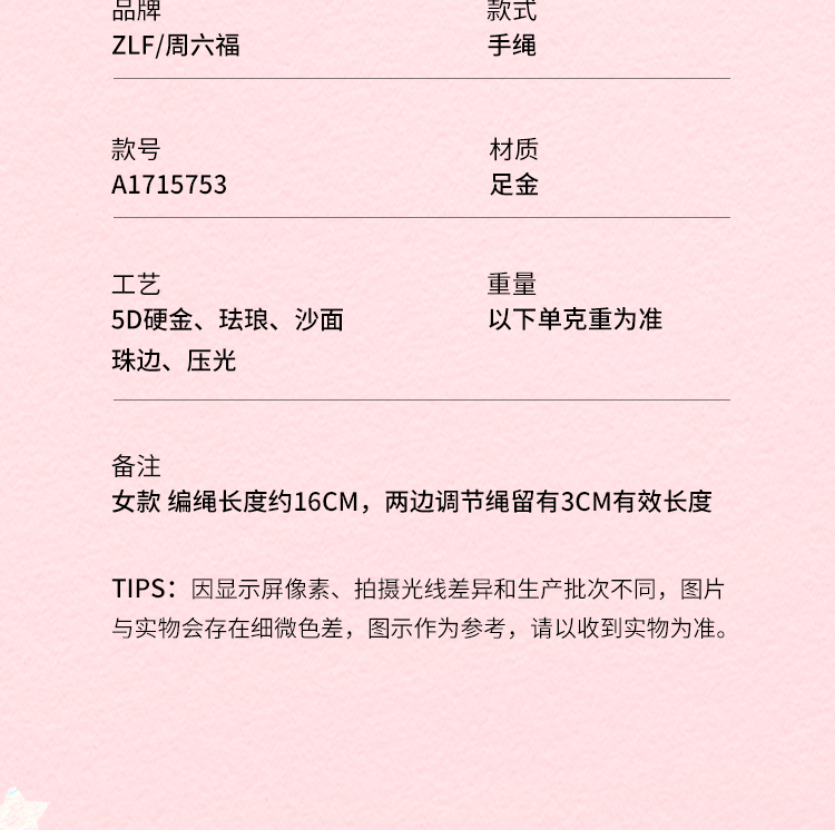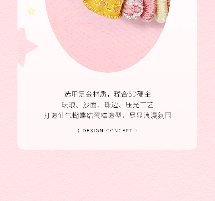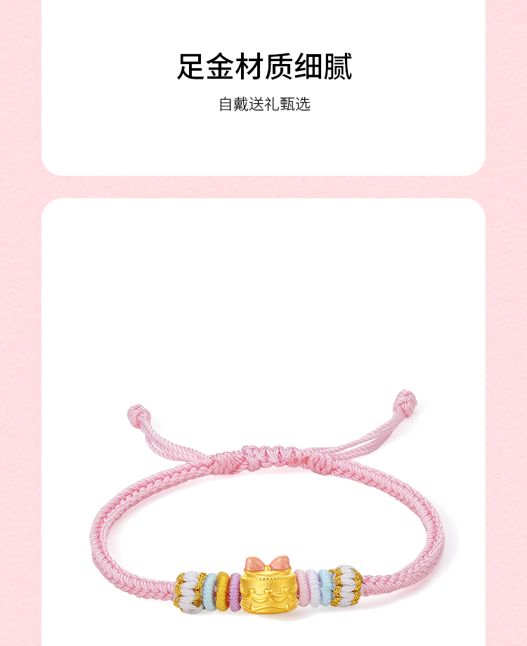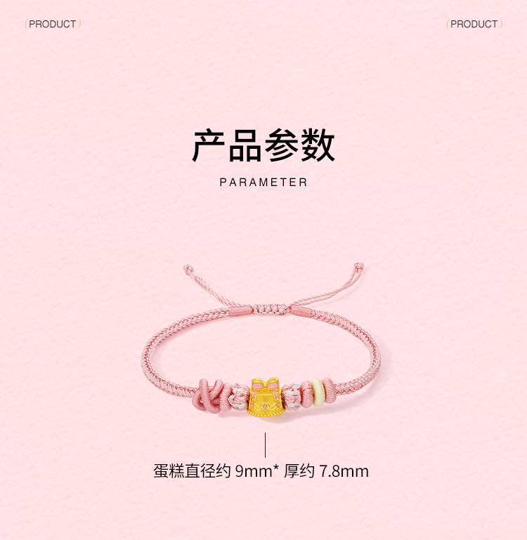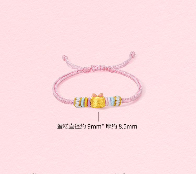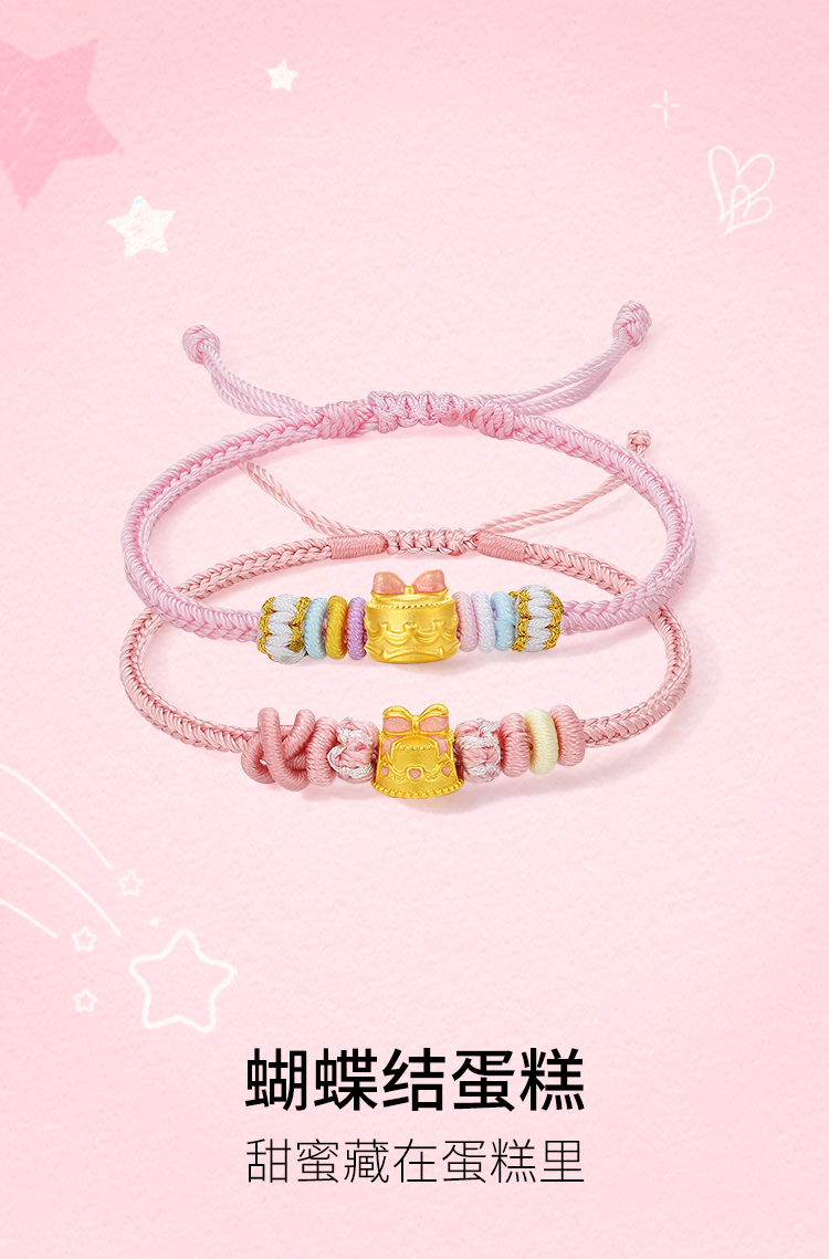 周六福黄金5d硬金定价手链女款新品蝴蝶结蛋糕618送女朋友礼物