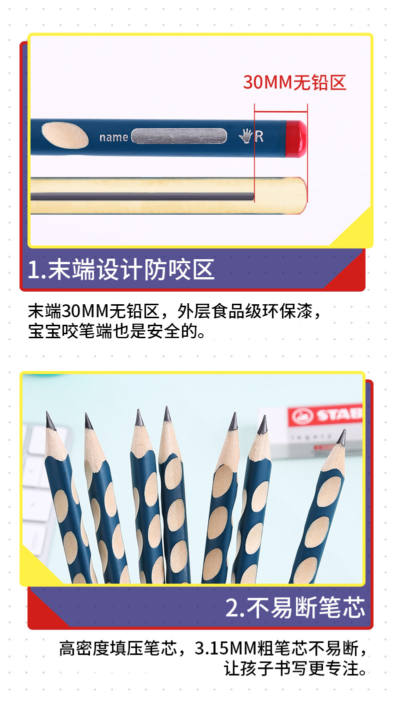 德国stabilo思笔乐洞洞铅笔322儿童幼儿园正姿初学者小学生练字专用无毒加粗