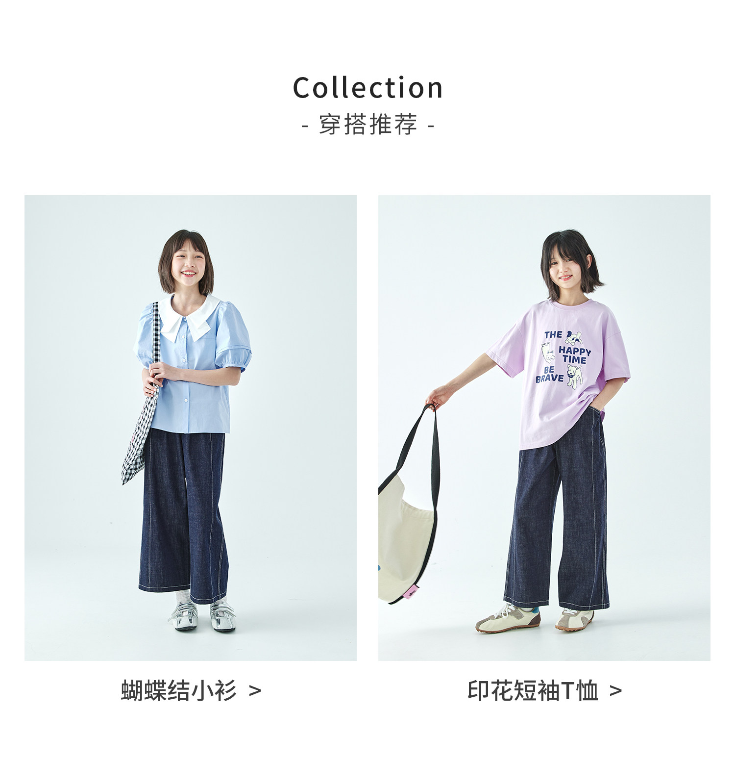 棵初2026年夏季新款亲子中大女童不落色牛仔裤轻薄宽松经典直筒裤
