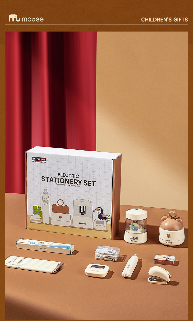 【超精美的学习文具礼盒套装】mobee电动文具套装自动削笔器礼盒 学习用品大礼包