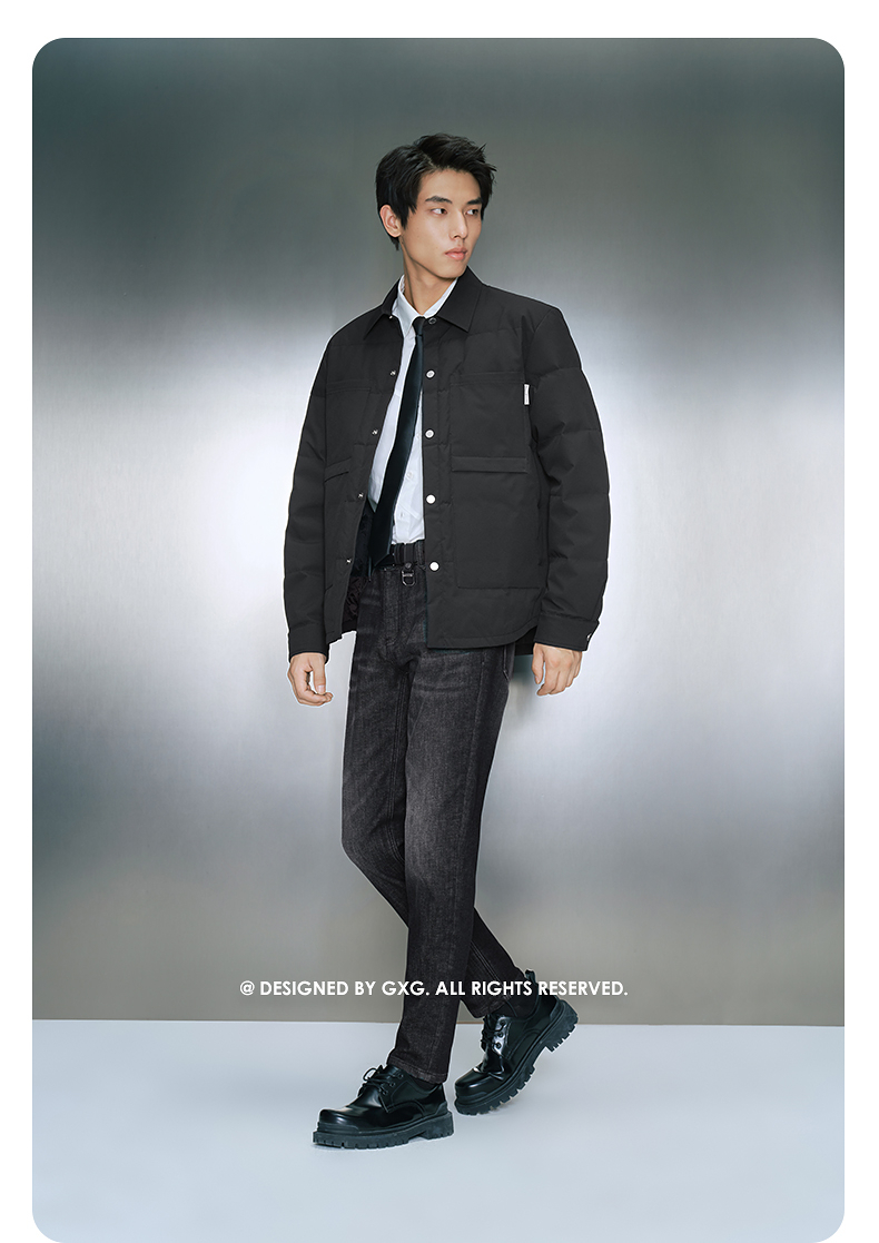 GXG男装 pu皮拼接立领棉服男潮流通勤加厚棉衣保暖外套 24冬热卖