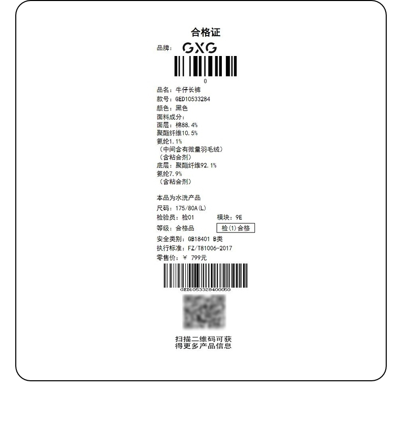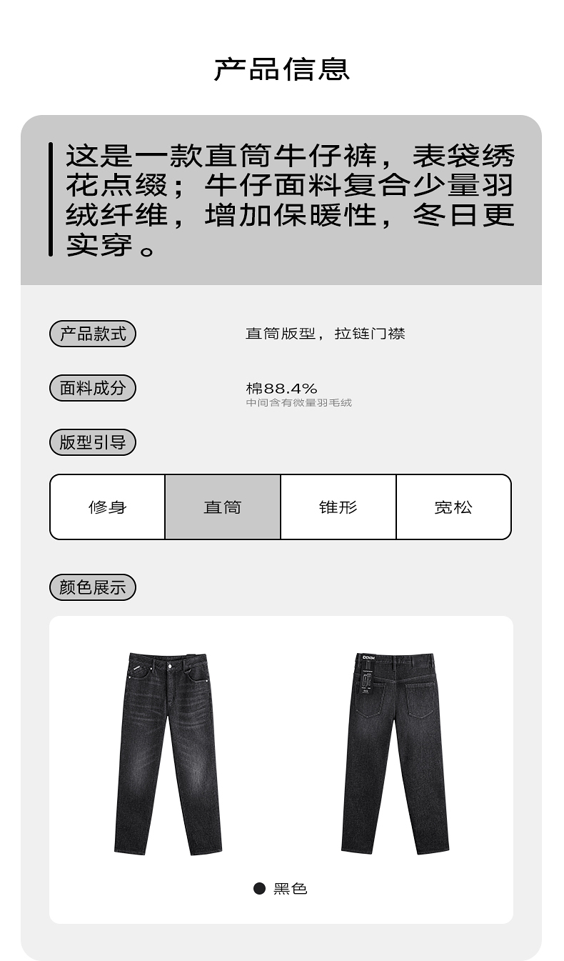 GXG男装 复合羽绒纤维保暖舒适绣花直筒牛仔长裤 冬季热卖牛仔裤
