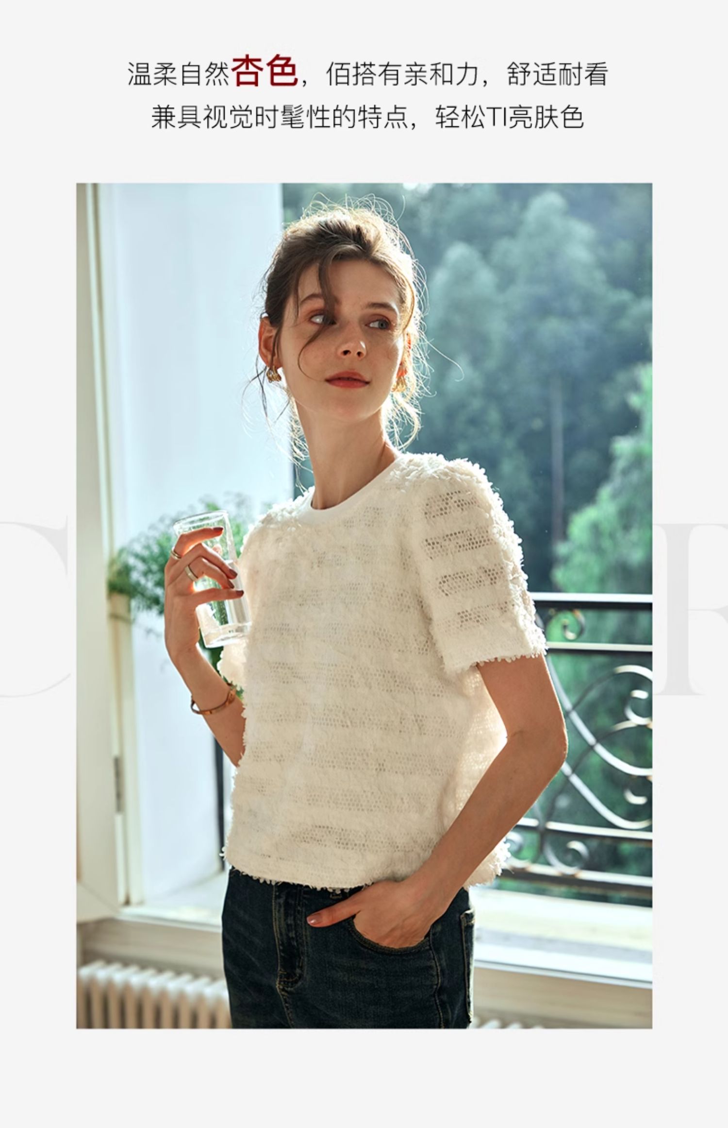 OLrain欧芮儿法式杏色蕾丝衫女春季2024新款气质雪纺时尚洋气上衣