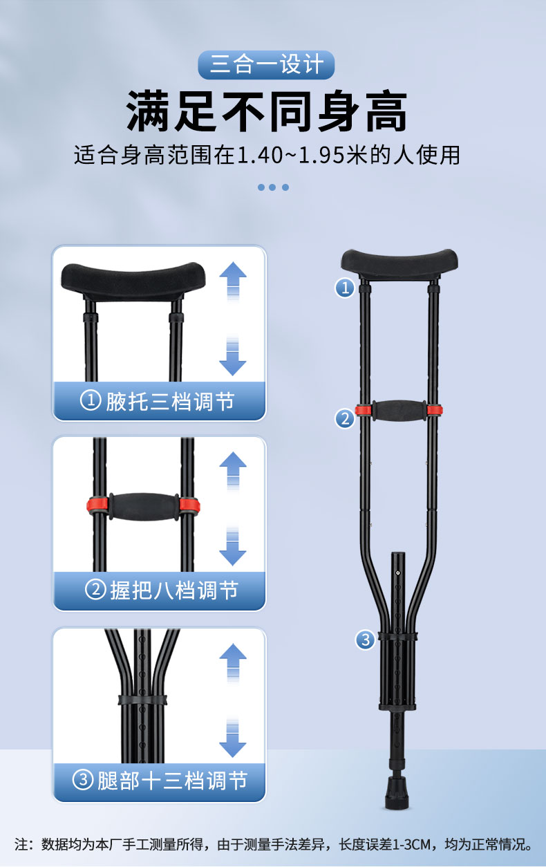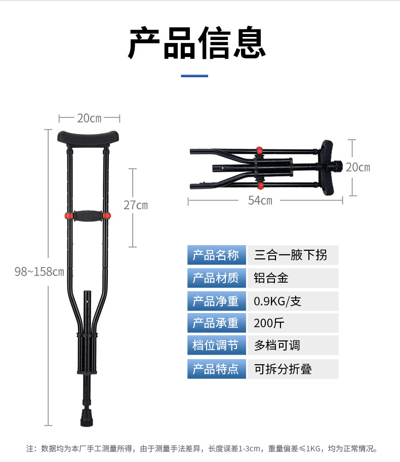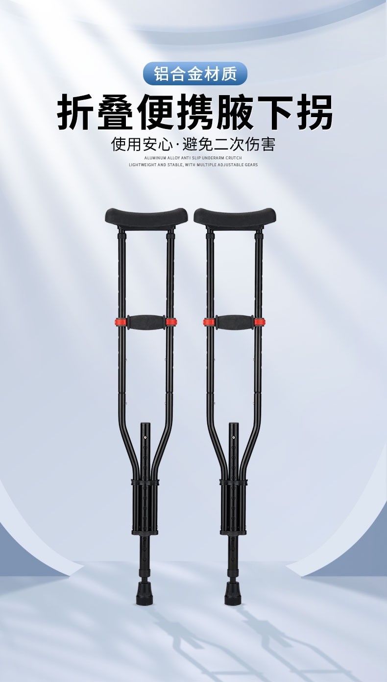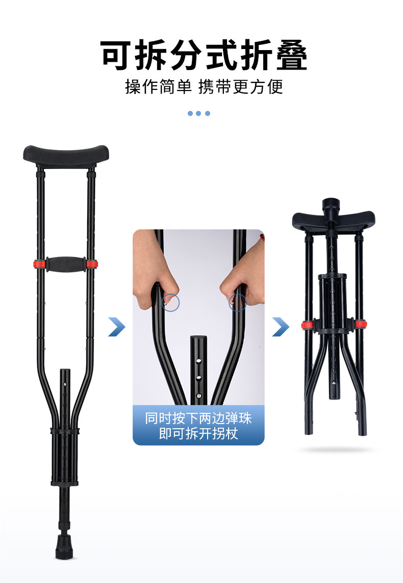 可靠拐杖YC8130 三合一拆分式折叠腋下拐 铝合金拐