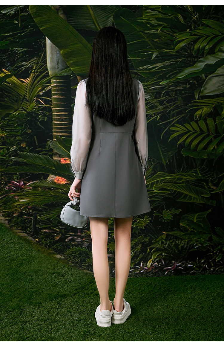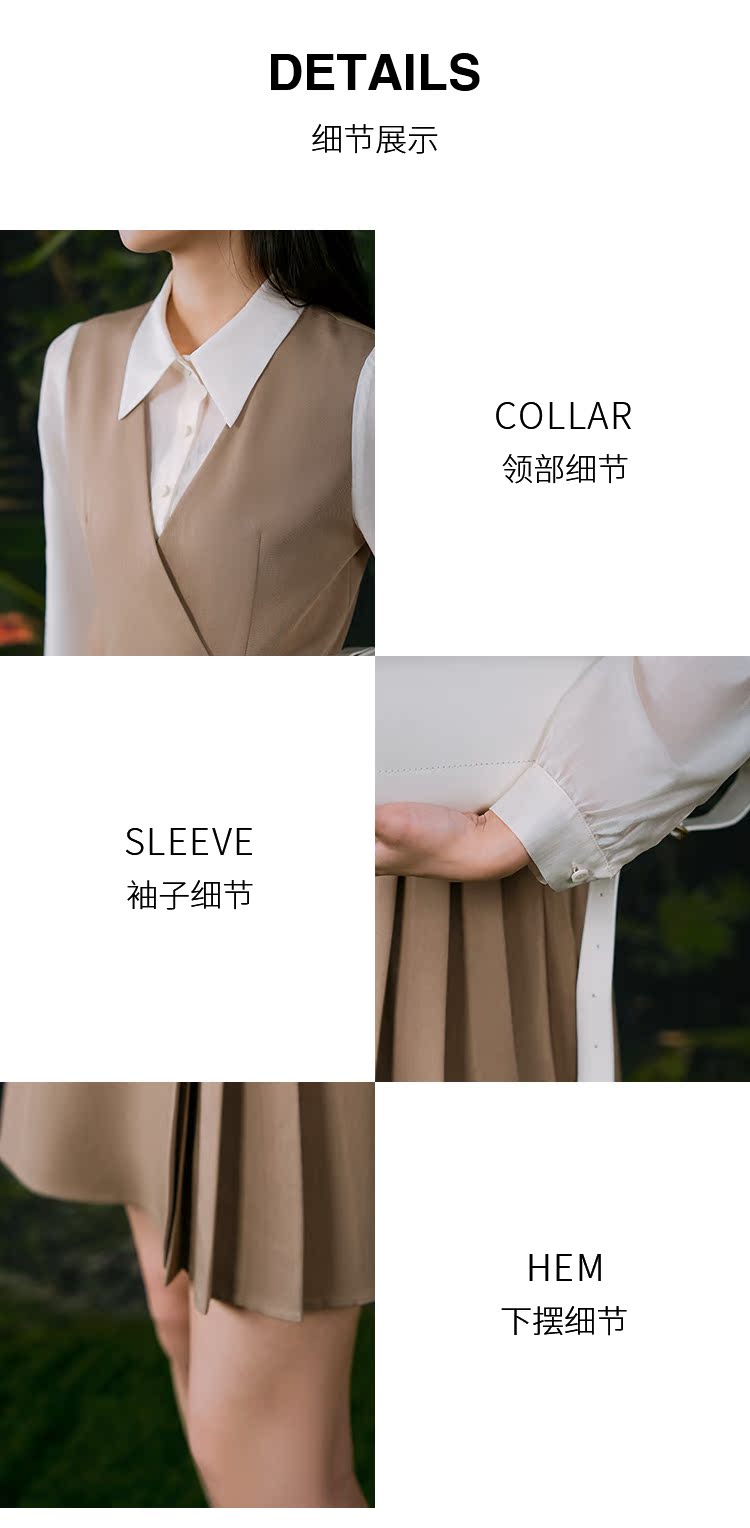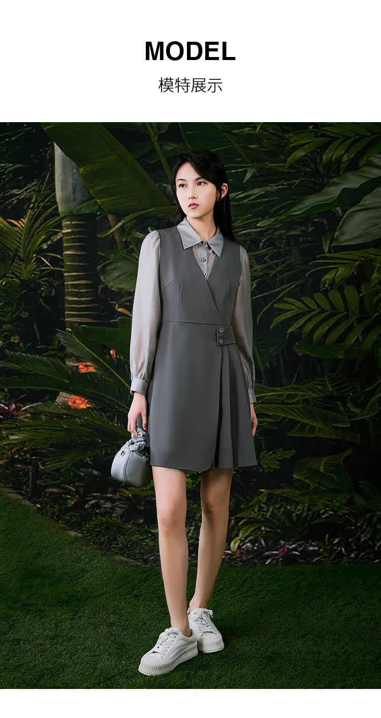NUTS春秋季新款设计感气质高腰短款衬衫连衣裙假两件415102440