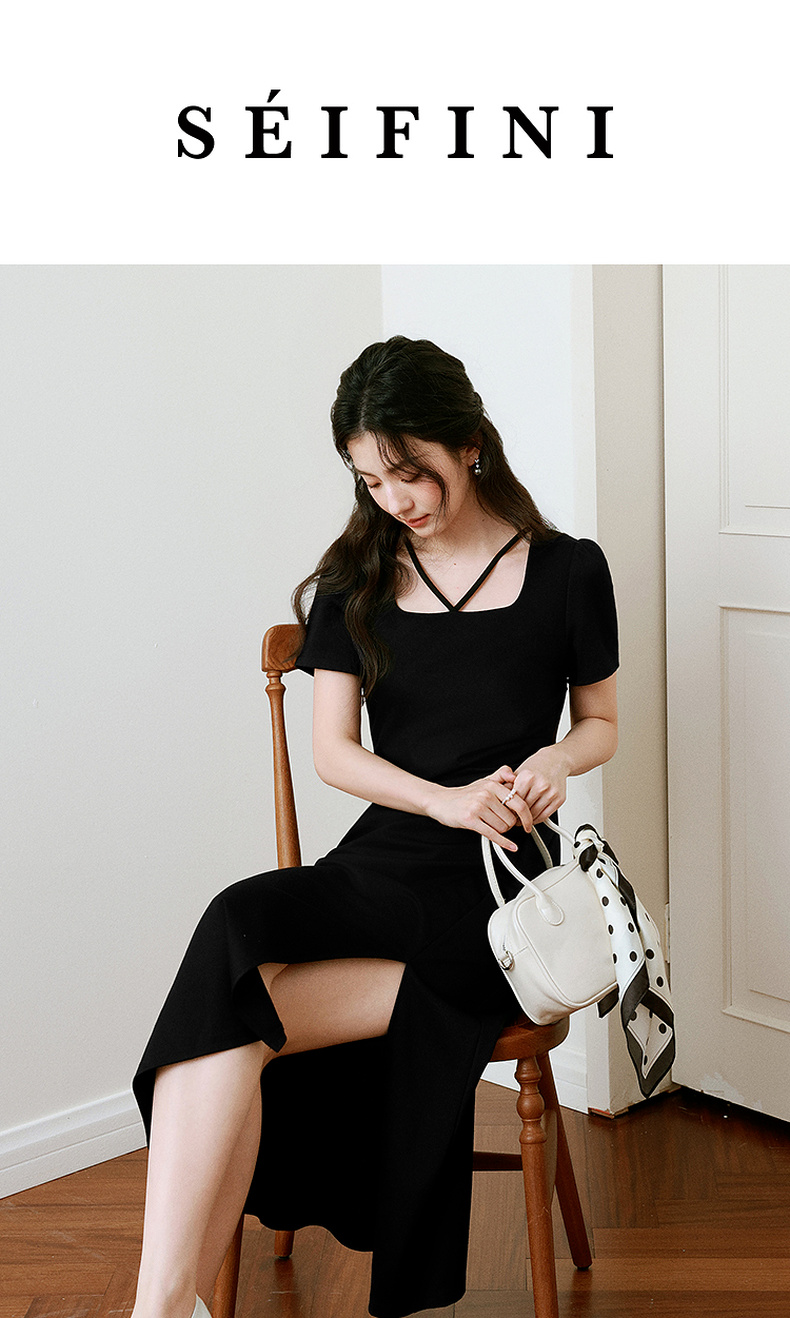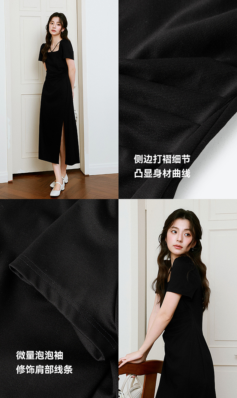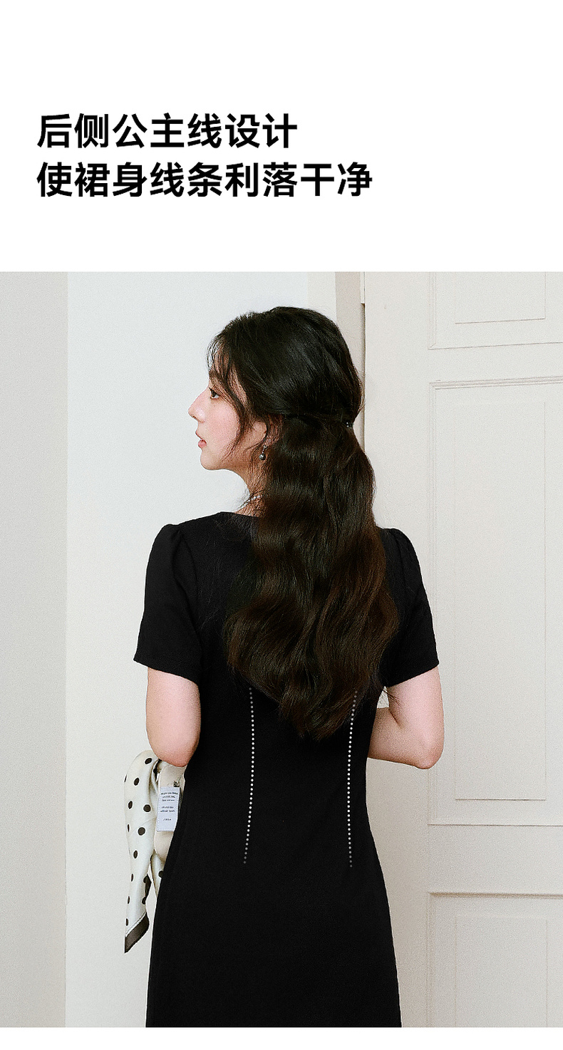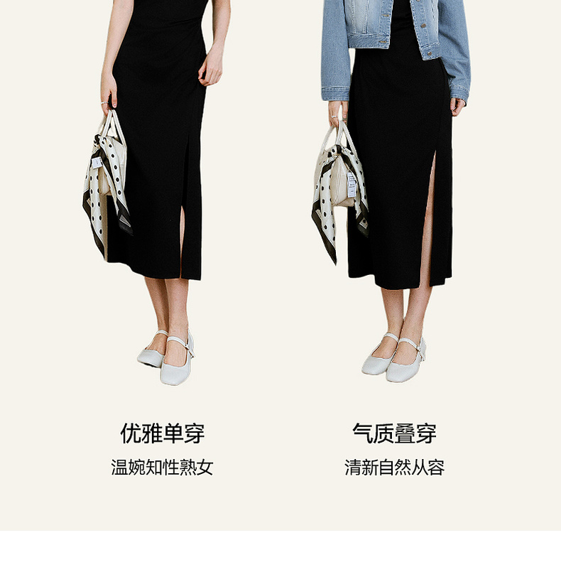 【严选】诗凡黎针织连衣裙25春新品小黑裙系列收腰法式简约风中长裙7G3190391