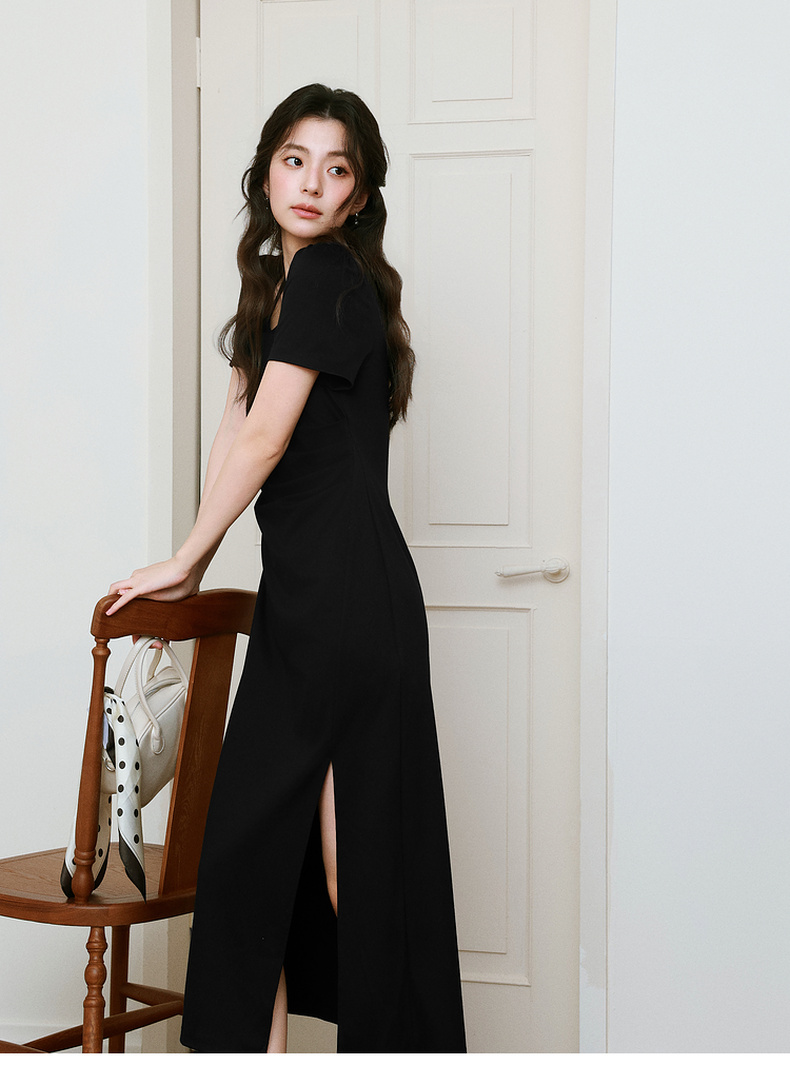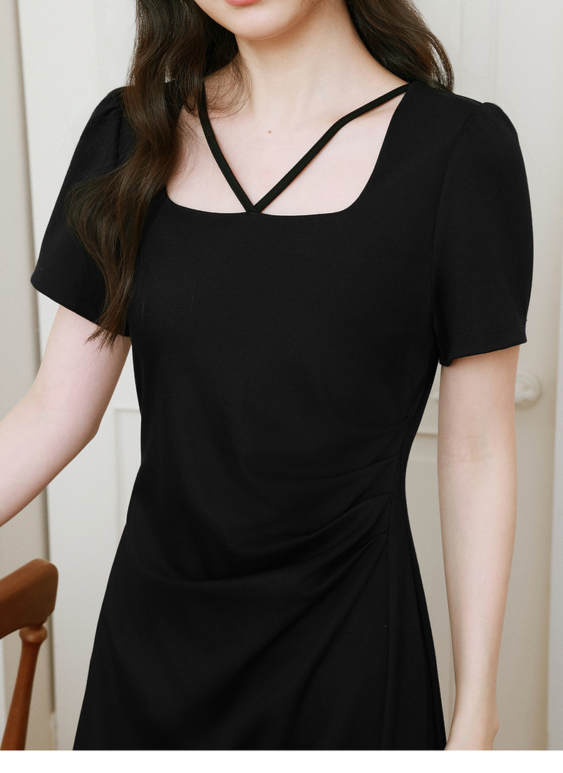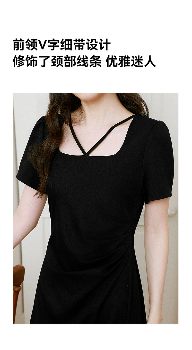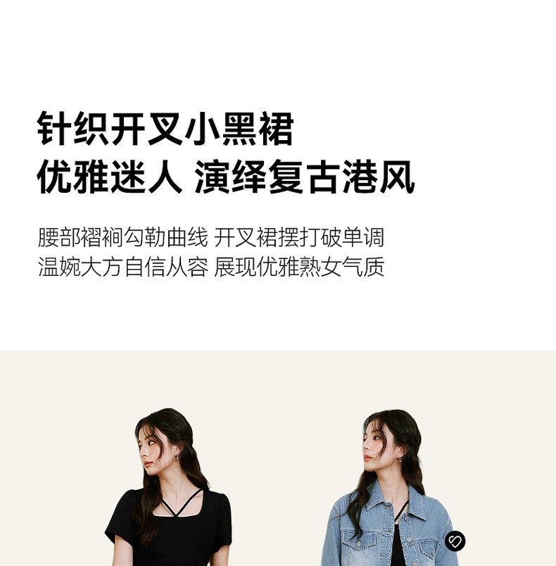【严选】诗凡黎针织连衣裙25春新品小黑裙系列收腰法式简约风中长裙7G3190391