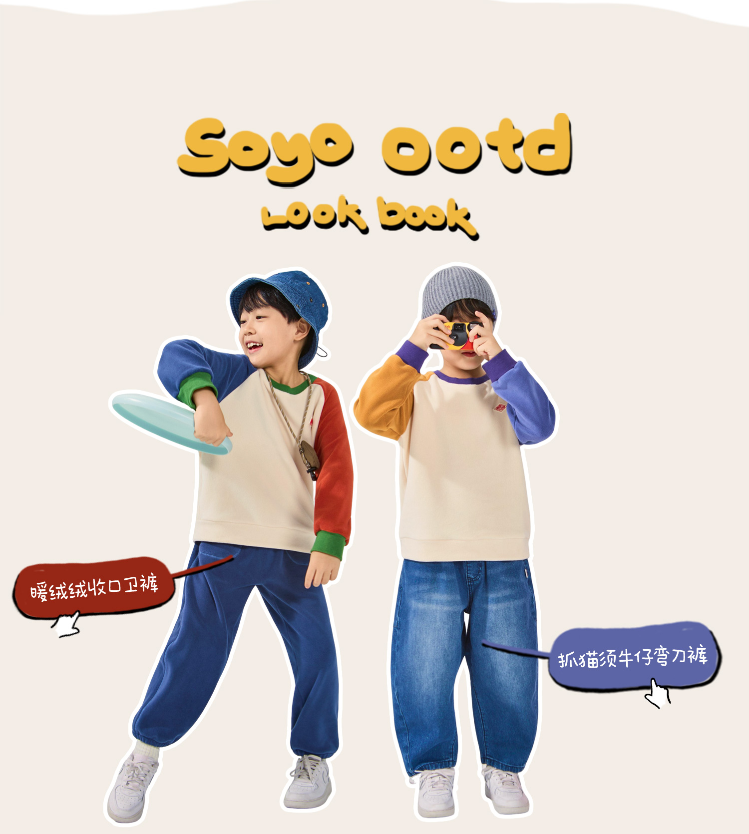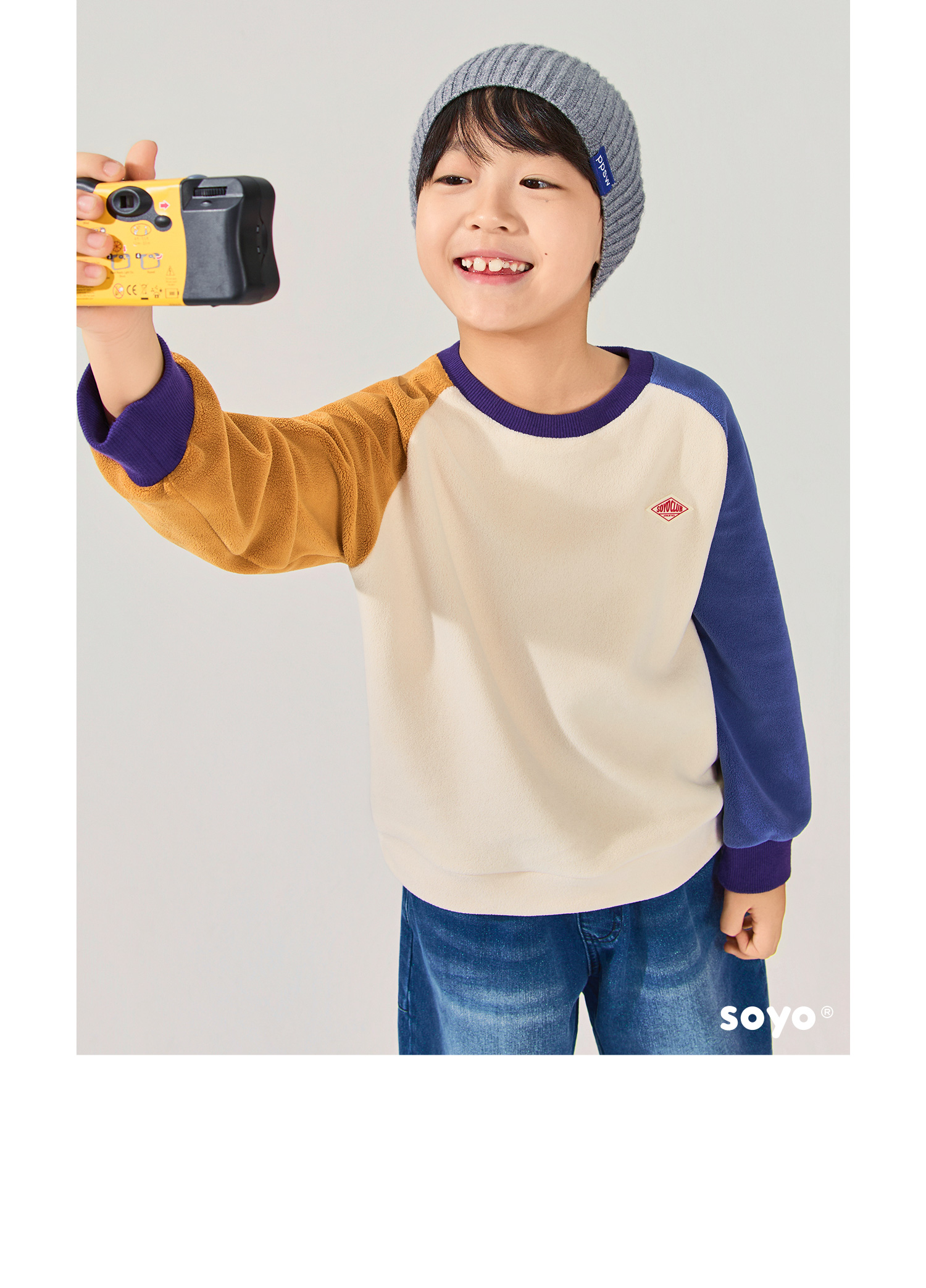 soyo舍予良仓25新款保暖亲肤拼色暖融融插肩袖卫衣